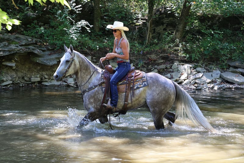 ONLINE AUCTION Place your bids at www.PlatinumEquineAuction.com Starting Bid $3500 Auction ends September 22nd, 2024 Need a new saddle? Check out White Rock Saddles on our website or Facebook! This is “HOT SMOKING GUNS” an incredibly nice AQHA registered dapple gray gelding. He is quiet minded and professionally trained. He is broke right and rides nicely in and out of the arena. He is started roping nicely and been out of the box on the head side. He has been trail ridden by novice riders at the state parks and open shows. He will move off of leg cues, side pass, one step lope, catch his leads, slide stop, and back up. He will bend and flex nicely and is soft in the bridle. He will break at the poll and give his face quietly. He will cross water, cautiously travel over rough and steep terrain, and go where he is pointed without hesitation. He has a nice easy turnaround and a true one hand neck rein. This gelding stands 16 hands tall and is 4 years old. He is royally bred and is a grandson of PLAYGUN. He also has greats such as FRECKLES PLAYBOY, JACKIE BEE, & SMART LITTLE LENA on his papers. He is a home raised, professionally trained, super intelligent very nice young 4 year old that is gentle, civilized, and has excellent manners. Don’t miss out if you want a great trail, ranch, rope, or performance horse. Located in Flemingsburg, KY. Contact HH Horses Erin 304-238-4155. ONLINE AUCTION Place your bids at www.PlatinumEquineAuction.com Starting Bid $3500 Auction ends September 22nd, 2024 Need a new saddle? Check out White Rock Saddles on our website or Facebook!