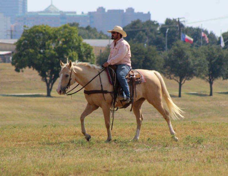 ONLINE AUCTION Place your bids at www.PlatinumEquineAuction.com Starting Bid $3500 Auction ends October 19th, 2025 Need a new saddle? Check out White Rock Saddles on our website or Facebook If tall, blonde, and handsome is your type—meet "A Guys New Image" also known as French Fry. This golden boy is the kind that’s hard to find and even harder to forget. With his stunning color, soft kind eye, and quiet, in-your-pocket personality, French Fry checks every single box for anyone looking for a true all-around gelding with a heart of gold. ✅2019 AQHA Registered gelding Guys New Image, with the legendary Frenchman’s Guy on his papers ✅Stands 16 hands with a strong, athletic build and flawless conformation ✅Lopes around soft and collected with a fancy handle and a smooth way of going ✅ Trail and ranch proven – crosses water, bridges, logs, and traffic with zero hesitation ✅ Used weekly for penning cattle, sorting, and loading trucks ✅ Been to the Fort Worth Stockyards – handled all the hustle and bustle like a pro ✅ Beginner friendly – safe, quiet, and honest ✅ Loves people – meets you at the gate, loves attention, and always aims to please French Fry is that rare combination of flash, foundation, and friendliness. He’s broke, kind, and classy—whether you’re looking for a trail buddy, a family-safe horse, or something with enough handle for ranch work or performance, this gelding can do it all. He’s got the look, the mind, the breeding, and the ride—and he’s ready to make someone very happy. We are open to anyone interested in him to schedule a time to come see him or if you can’t make it schedule a FaceTime showing to see him. If you need help with transport don’t hesitate to ask we have a list of reputable haulers that can get him safely to your doorstep WORLD WIDE including, Alaska , Mexico, Hawaii, Canada and anywhere in between. Located in Stephenville, TX. Contact Michelle with M $ Performance Horses 661-817-9120 with any questions. ONLINE AUCTION Place your bids at www.PlatinumEquineAuction.com Starting Bid $3500 Auction ends October 19th, 2025 Need a new saddle? Check out White Rock Saddles on our website or Facebook