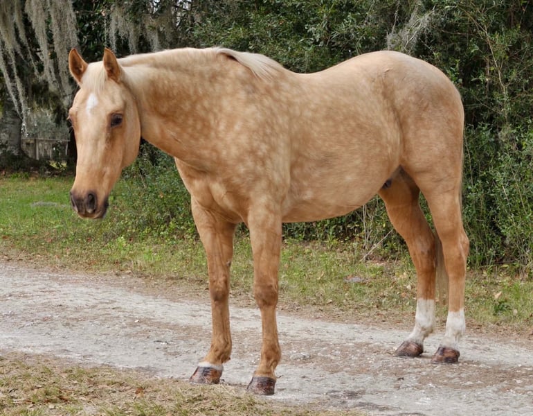 ONLINE AUCTION Place your bids at www.PlatinumEquineAuction.com Starting Bid $3500 Auction ends January 4th, 2025 Need a new saddle? Check out White Rock Saddles on our website or Facebook Tater is a beautiful 6 year old golden dapple palomino gelding with a pretty head, white mane and tail, and a big set of britches. He stands 14.3 hands tall and weighs approximately 1,175 pounds. Tater is old-fashioned, one-hand broke, and extremely user-friendly. He has been used extensively in lesson programs for both youth and adults, including experience with autistic teenagers. Tater resides in Iowa in the summertime and lives in Florida in the winter. Tater has been ridden English and Western and is confident on any trail—water, ditches, and new environments do not bother him. He is not spooky and has no bad habits (no buck, bite, or kick). Tater stands quietly like a statue for mounting and dismounting from either the ground or a mounting block. He is easy to bridle, rides comfortably in a back cinch, and is 100% sound in mind, body, and spirit. He is very cowy, making him a great fit for a ranch or all-around family horse. He is accustomed to farm animals, dogs, wildlife, and heavy equipment such as tractors, skid loaders, and dump trucks. Tater is an easy keeper in both pasture and stall, gets along well in a herd, and hauls quietly next to anything. He easy to catch and can be ridden bareback! ✔ Up-to-date on vaccinations ✔ Regularly wormed ✔ Teeth floated every six months Veterinary inspection and X-rays welcome at buyer’s expense. 📞 Call or text: John McPhail 319-721-7714 Located in Lisbon, IA. ONLINE AUCTION Place your bids at www.PlatinumEquineAuction.com Starting Bid $3500 Auction ends January 4th, 2025 Need a new saddle? Check out White Rock Saddles on our website or Facebook