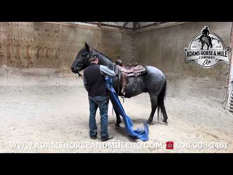 Go to visit our website for more pics and a video www.AdamsHorseAndMuleCo.com AHAMC has been in the horse business and sold horses over the internet since 2005. We have a long track record of success with hundreds of happy customers. We work hard to match riders with the correct horses and specialize in beginner safe, family friendly horses that have been used and checked out by our family! We can set up transportation anywhere in the US and look forward to working with you. Hondo is a rare TRUE BLUE ROAN Draftcross gelding! He is coming 6 years old and is a very stocky built horse. Hondo came from the same breeding farm that a lot of our draftcrosses come from and with that farm we find the constant quiet, gentle, laid back temperament that makes them such good family safe trail horses! Hondo is no exception to that statement as he is a super quiet, gentle, laid back type of horse that is going to suit any rider. Not to mention he is very friendly as well! Hondo can do a variety of things from pulling carriages, to ranch work or trail rides. He has been on camping trips, been ridden in several states and has been ridden by all ages of beginners. When out on the ranch or going down the trails he will cross creeks, ditches, logs and navigate rough rocky areas. He is safe in traffic safe whether that be trucks or cars. He’s been ridden around the ranch, checked cows and rode fences. Hondo moves very smoothly, as he has a nice jog, his lope is smooth as well and he lopes nice circles on a loose rein! Hondo is blue but he will never make you blue and he is sure to be your new best friend! Feel free to call Eric 606-308-2461 with any questions!