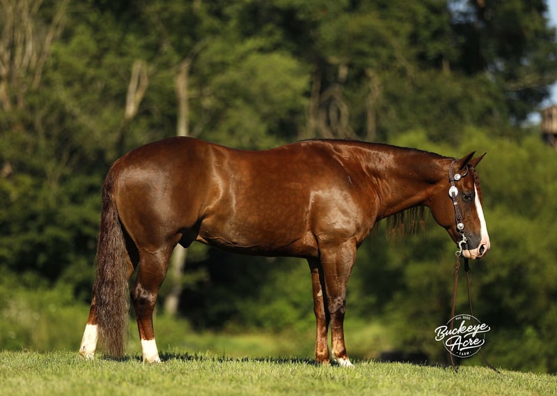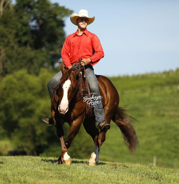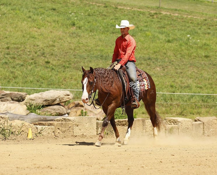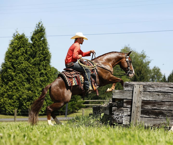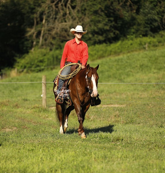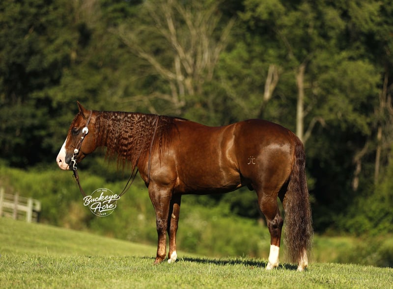His name says it all—Promise is a horse that delivers. From his impressive breeding to his size, color, and temperament, he is built to impress. Born in 2019, this 14.1-hand Dark Sorrel AQHA Gelding is an own son of Gunnatrashya, a Hall of Fame earner with over $200K in earnings, and on the bottom side traces back to the legendary Smart Little Lena. He’s NRHA licensed, making him an ideal prospect for showing, yet his calm, sensible nature makes him perfect for the trail, ranch work, or casual riding. Promise is a head-turner with a long, flowing mane and tail, three white socks, a striking white blaze, flawless confirmation, and that bright, alert eye that exudes intelligence. He is a true all-around horse, equally at home in the show pen or out on the trail. He has already proven himself in the show ring, having been shown in a local ranch show, and continues to excel wherever he goes. He has been exposed to state roads, traffic, and countless trails. He has done ranch work checking cows, fence lines, and our back pasture herd. His gaits are smooth and balanced from walk and trot to extended trot and lope. Promise knows his leads, offers a good lead change, and can even perform a sliding stop, making him comfortable and versatile for performance or pleasure. Promise is just as steady in an indoor or outdoor arena, ridden western, English, or bareback—he never misses a beat. He is easy in the barn, great for the farrier, calm in the wash bay, and loves attention, always the first to greet you at the gate. Confident around tarps, jugs, and whips, he’s the kind of horse you can trail ride today and show tomorrow. Best of all, he is safe and dependable for any level rider—from beginner to senior to advanced, making him a rare find in today’s market. He is up to date on all vaccinations, deworming, and shoeing, and is ready to step into his next home. If this sounds like the horse you have been looking for, please feel free to reach out to Duane @ 330-231-2324 for more information or to schedule a day to stop by and see him in person.