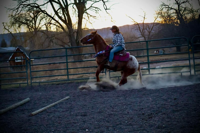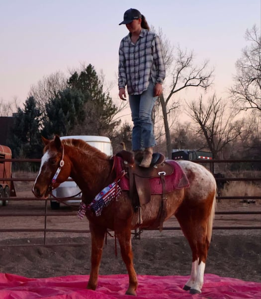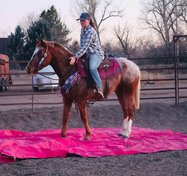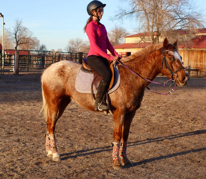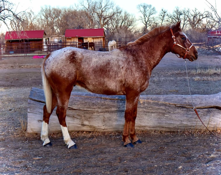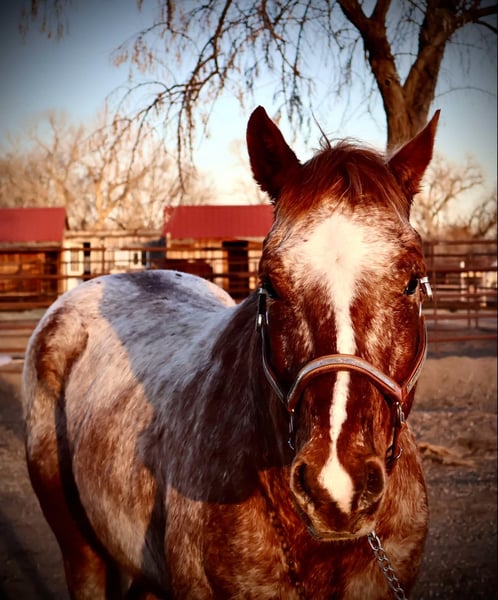 ONLINE AUCTION Place your bids at www.PlatinumEquineAuction.com Starting Bid $3500 Auction ends March 16th, 2025 Need a new saddle? Check out White Rock Saddles on our website or Facebook! Simba is an absolutely stunning 14.2h, 6 year old red roan Appaloosa gelding with a HUGE heart and a ton of try! This gelding is absolutely genius, picks up on everything you teach him quickly and willingly, is extremely athletic and supple and is also safe for younger riders!! Simba knows how to “pick you up” at the block, knows how to bow and lay down on command, is working on the smile and absolutely loves people and other horses! Simba has a nice walk/jog/lope, a quick stop and rollback, knows how to collect up and hold himself and knows how to sit down off of just your voice and seat! Simba is also a trail wiz! He absolutely loves being out and about whether it’s with a group of horses or by himself, He is trustworthy and reliable every adventure. Simba has been ridden right next to highways and busy streets with not a care in the world, he’s been by bikes, trains, runners, and all of the hectic town life! We have taken Simba to the drive through, straight through downtown Fort Collins and even up onto some rugged mountain terrain! On top of Simbas arena and trail prowess he also has really loved his time in an English saddle, he is started over fences and has been hauled to a couple different cross country courses! Simba has a lot of try and really enjoys learning new things. Whether you’re wanting to go out and ranch on him, take him through town or pack up into the mountains, Simba is up for the adventure! Located in Fort Collins, CO. Contact Dynamite Horses Thea 970-632-3644 with any questions. ONLINE AUCTION Place your bids at www.PlatinumEquineAuction.com Starting Bid $3500 Auction ends March 16th, 2025 Need a new saddle? Check out White Rock Saddles on our website or Facebook!