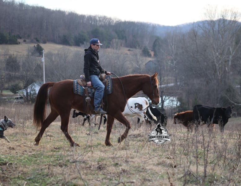 🌟𝑨𝒑𝒓𝒊𝒍 𝐀𝐋𝐋 𝐒𝐓𝐀𝐑 𝐋𝐈𝐍𝐄𝐔𝐏🌟 Happening now thru MONDAY | APRIL 6th - Available EXCLUSIVELY on HorseBid's website! For more details and to register visit: www.Horsebid.com CONSIGNOR CONTACT: Eric Adams 606-308-2461 LOCATION: Mt. Vernon, KY BREED: AQHA REGISTERED: Yes REGISTERED NAME: Uptown Twisted Drift COLOR: Chestnut HEIGHT: 15 AGE: 7 GENDER: Gelding When you walk onto a car lot everyone sees the fancy shiny Lincoln, Tesla or Cadillac setting at the entrance… but not everyone sees the muddy 4×4 setting around back that will get the job done, is a lot easier to operate and will start with no issues when its below 0 degrees!!! Uptown Twisted Drift aka Twister is that 4×4! He is reliable, always easy to ride, does any job that is asked of him and he still has all of the buttons! Twister is a chestnut Registered Quarter Horse Gelding, standing 15h, that is a 2019 Model. Twister is a well traveled horse that has been ridden in many states from Oregon to Montana and Texas to Kentucky. He knows all about the ranch life, from herding to sorting, pasture roping, riding the feedyard… he has done it all! If your confidence is low and needs a boost, he is the one for you! He is great in the trails and has been in the high country that is very rough and rocky. He will cross creeks, ditches, logs and navigate rough rocky areas. He will go up or down even the steepest slopes, across deep creeks, over downed trees, and over all types of rough terrain while still being sure footed. Twister has a smooth jog and a very smooth lope! He takes the correct leads, lopes nice circles, is one hand broke and reins around with ease. Twister has been ridden by our kids and is safe for the whole family! If you are over buying a flashy colored horse and now want one that is reliable and safe… Twister is the one for you! If you have any questions call Eric 606-308-2461.