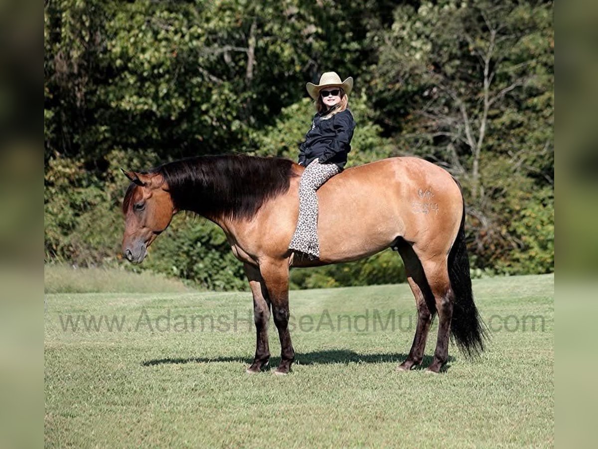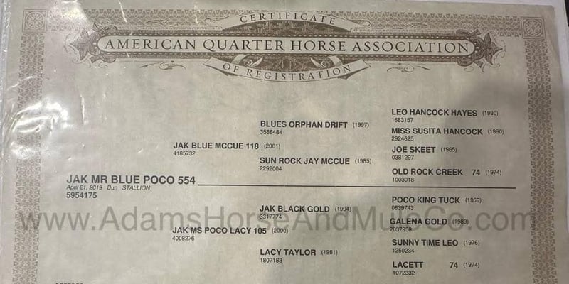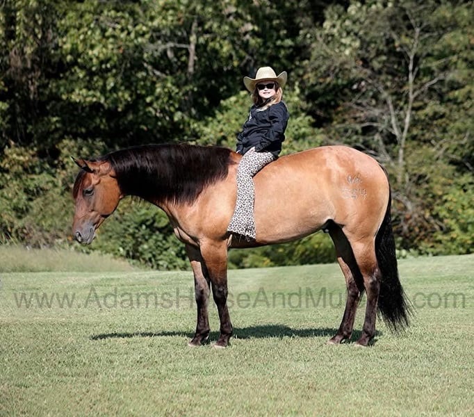 Jak is consigned to the Cowgirls Cadillacs sale in Wickenburg, AZ on February 21-22, 2025. Make plans to attend, you can bid in person or bid online. You can preview any horse in Mt. Vernon, KY before they head to Wickenburg, AZ or preview them when they arrive at the sale. Shipping can be arranged to any state or Canada. You can get more info about the sale at www.CowgirlCadillacs.com THESE Horses ARE NOT AVALAIBLE FOR PRIVATE PURCHASE If you have big dreams and ambitions of doing cowgirl work out on the ranch or maybe just moseying along down the trails or even competing in a Ranch Show Class and need that special partner that is automatic… One that knows what to do, maybe even if you don’t??? Well if that sounds like you, Jak Mr Blue Poco 554 needs to be walking through your barn door! Poco is a well built 15.1hh, 2019 model, registered AQHA, Dun (with buckskin shades) Gelding. He is one of the friendliest horses that you will find and he loves attention! Poco is a horse for all jobs, anything on the ranch from sorting to pasture roping, to trails up in the rugged mountains, put him in the ranch classes or back him in the box and collect a check… he will do it all and do it all- RIGHT! He handles all terrains on the trails, from steep slopes to rough rocky areas, Poco has safely carried our girls through some rough spots! In addition to the kids trail riding him, we have also used him at the stockyards penning cattle and he has worked on a feedlot as well. Poco is a super gentle, laid back type of horse that is gentle enough for all levels of riders! He has a smooth jog, takes his leads in a nice slow lope and slide stops. Poco is one hand broke, he spins both ways, sidepasses to open/shut gates and backs with ease. He has been exposed to all kinds of wildlife and works well with stock dogs. He is the same horse whether ridden daily or even if he is left in the pasture for an extended period of time. He has no vices, we trust him 100% and we feel like he will be the perfect addition to anyone’s family! Call 606-308-2461 for more info.