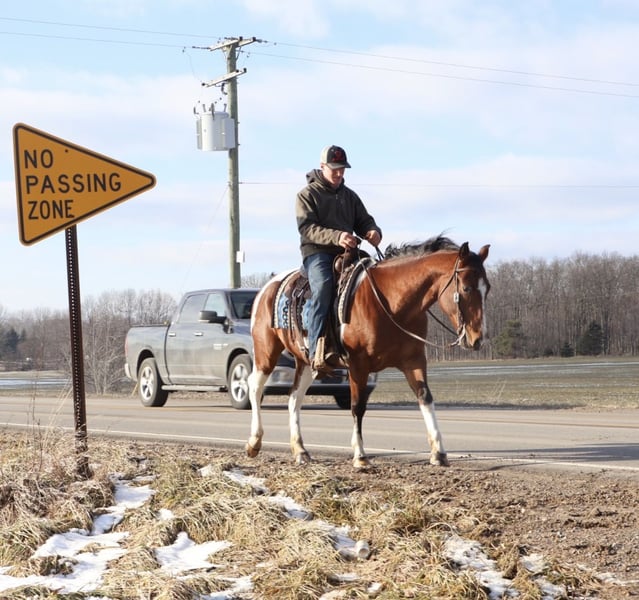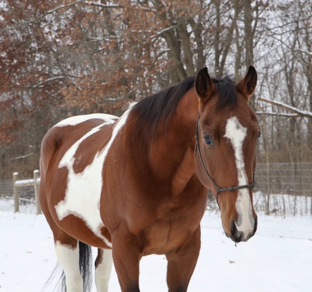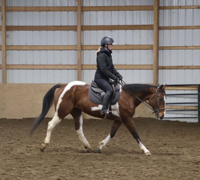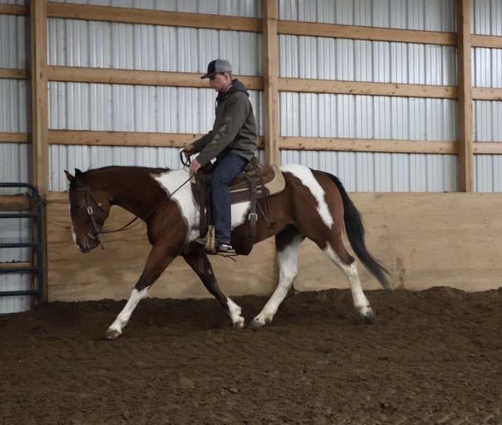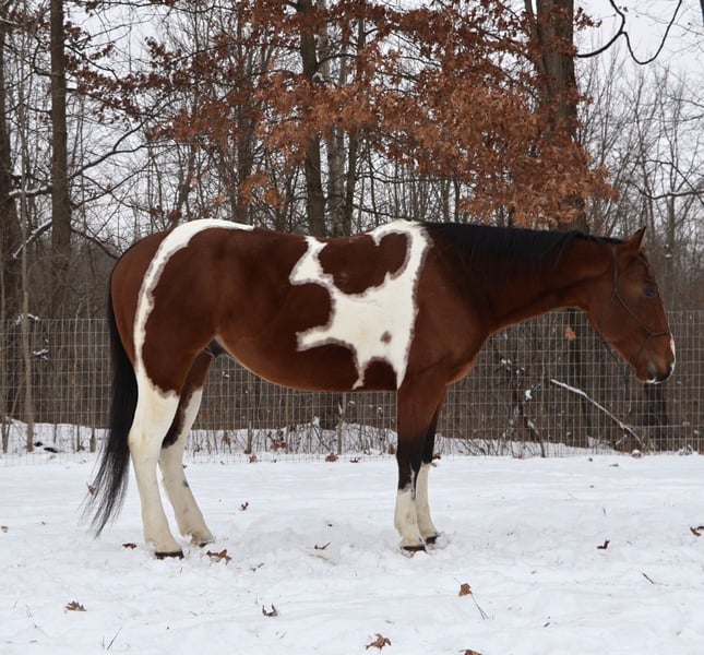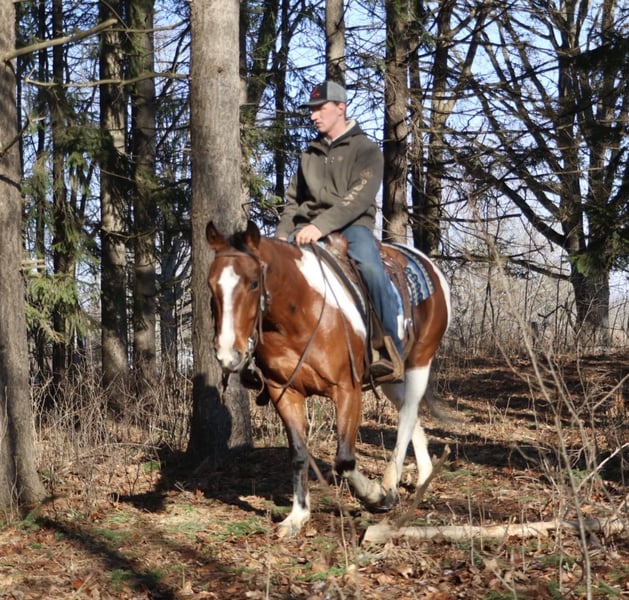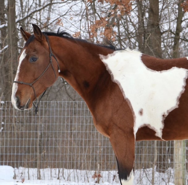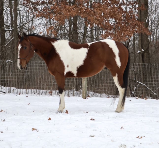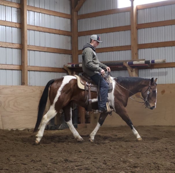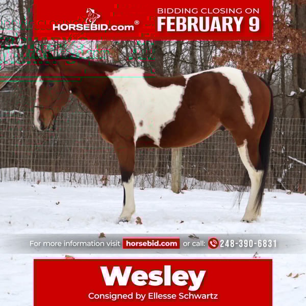 ❤️🔥𝑩𝒆 𝑴𝒊𝒏𝒆 𝐒𝐄𝐋𝐄𝐂𝐓❤️🔥 Happening now thru MONDAY | FEBRUARY 9th - Available EXCLUSIVELY on HorseBid's website! For more details and to register visit: www.Horsebid.com CONSIGNOR CONTACT: Ellesse Schwartz 248-390-6831 LOCATION: Howell, MI BREED: Quarter Horse REGISTERED: No REGISTERED NAME: Wesley COLOR: Tri colored paint HEIGHT: 15.1 AGE: 7 GENDER: Gelding Will you be mine? Meet Wesley! Talk about a flashy guy! He stands a sturdy 15.1hh at 7 years old. Wesley is a beautifully marked tri-colored paint gelding. He is very polite on the ground. He stands tied, stands for a bath, stands to be groomed and tacked. He has spent much of his life on the trails just being a laid back trail horse. With that being said he's well traveled and not reactive. Wesley has seen woods, water and wildlife. He's been down back roads and thru open fields. He's always game to go on an adventure. He will gladly take the lead but will also follow along. He rides out alone as well. He is a very simple cluck to go and pull to stop kind of ride. His gaits are so comfortable you may think you're sitting on a cloud! Recently Wesley has been started on some more formal arena work and is progressing very well. He is eager to learn and has a willing demeanor. With some Finishing touches he could clean up in the show ring! He is a best-friend type of guy looking For his next rider to hit the trails or continue arena training!