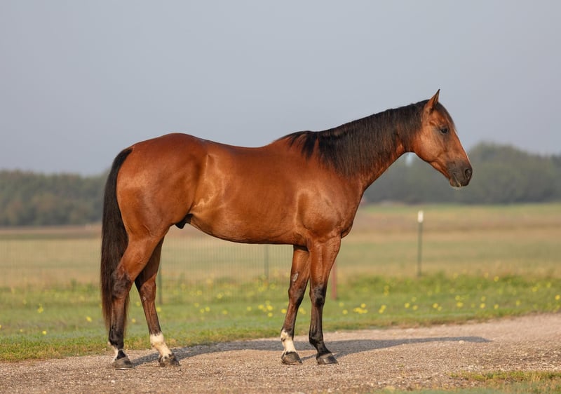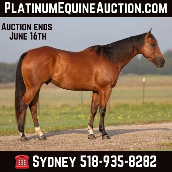 ONLINE AUCTION Place your bids at www.PlatinumEquineAuction.com Starting Bid $3500 Auction ends June 16th, 2024 Need a new saddle? Check out White Rock Saddles on our website or Facebook! FS Wars Wilywood aka “Ritz” is a registered AQHA 2019 Bay gelding, standing at 15.1H. Ritz acquired his name from… you guessed it! The household favorite Ritz cracker! This guy is so simple and easy he is EVERYONES favorite. Ritz will reel you in with his goofy gelding personality and blow you away with how calm, cool and collected he stays in every situation both on the ground and under saddle. Ritz walk, trot, lopes on a loose rein. He will guide around nicely with one hand or two in any gait. Ritz listens well to leg pressure and is soft in your hands.This gelding will make an excellent mount for any type of rider, whether you’re a beginner or an advanced rider you’ll have tons of fun on him! He would make the perfect trail mount or can go on to be a performance prospect with tons of other options for him in between. Ritz has been a pleasure for me to ride and is always my first go to horse if I’ve had a rough day or I just feel like I need a break and need an easy ride to take the stress of a long day away. He is a very consistent horse and does well with time off or is happy to work for a couple hours everyday. For only being 5 years old this gelding acts like a seasoned veteran. Take him out on a trail by yourself or with other horses and he won’t complain even the slightest! He has zero vices that I’ve come across. This gelding has an excellent puppy dog personality and will happily follow you around all day if you wanted him to! Ritz also leads, loads, and ties like a gentleman without any silly business. He’ll stand nicely to be groomed, saddled, and bathed. Ritz has been recently shod and was excellent for the farrier, and has also been seen recently by our vet, chiropractor, and dentist so he’s in tip top shape to go to work! He gets along well with other horses both in the pasture and the arena. He’s an excellent, GENTLE young horse with his whole life and career ahead of him. I know this guy will be an absolute favorite in someone’s barn, just as he is in mine. Please call Sydney with SRS Training and Sales for more information and questions you may have at 518-935-8282. Ritz is located in Granbury, TX. ONLINE AUCTION Place your bids at www.PlatinumEquineAuction.com Starting Bid $3500 Auction ends June 16th, 2024 Need a new saddle? Check out White Rock Saddles on our website or Facebook!