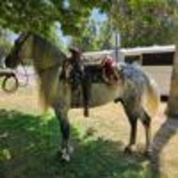 ONLINE VEILING Bied mee via www.PlatinumEquineAuction.com Startbod $3500 Veiling sluit op 17 augustus 2025 Ben je op zoek naar een nieuw zadel? Kijk dan eens bij White Rock Saddles op onze website of Facebook Topo is een prachtige 6-jarige hengst van 15,2 hh, een Quarter Horse cross. Hij heeft een schitterende gevlekte grijze kleur met een lange manen en staart. Hij beschikt over een uitstekende conformatie en een sterk, atletisch gebouwd lichaam. Hij is zachtaardig en respectvol op de grond. Hij kan worden vastgebonden, geleid, staat stil voor grooming en hoefsmid. Perfect voor parades, shows, feesten en andere evenementen, met potentieel voor ranchwerk, trailritten of fokkerij. Gezond, sound en goed verzorgd, up-to-date met vaccinaties, ontworming en hoefbeslag. Gevestigd in Alhambra, CA. Neem contact op met Carlos Perez via 562-456-7730 voor vragen. ONLINE VEILING Bied mee via www.PlatinumEquineAuction.com Startbod $3500 Veiling sluit op 17 augustus 2025 Ben je op zoek naar een nieuw zadel? Kijk dan eens bij White Rock Saddles op onze website of Facebook