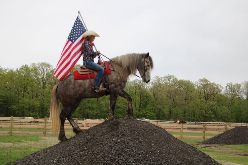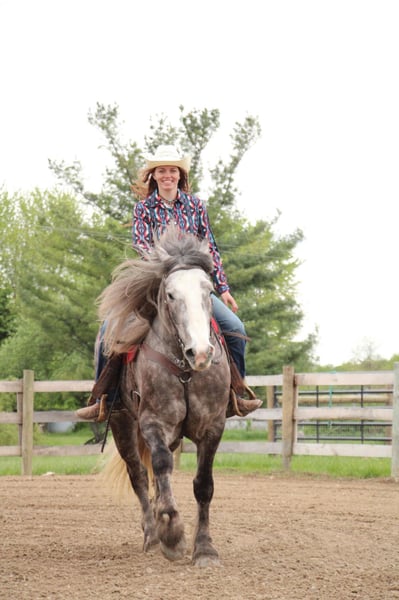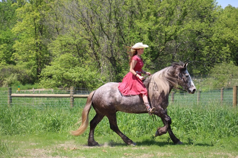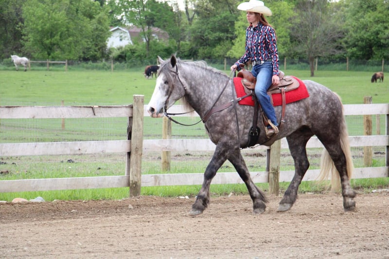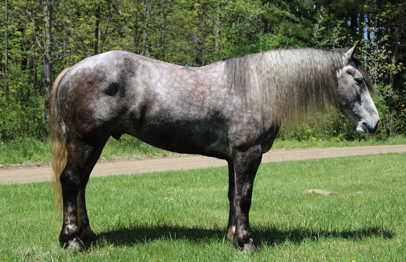ONLINE AUCTION Place your bids at www.PlatinumEquineAuction.com Starting Bid $3500 Auction ends June 9th, 2024 Need a new saddle? Check out White Rock Saddles on our website or Facebook! “Cinnamon Twist” or Cinnamon as we call him is nothing short of spectacular. From his mind to his color there’s nothing he’s lacking. Cinnamon is a 15.3hh stout made Drum horse (Gypsy Vanner Percheron cross) dappled grey gelding. He is 5 years old. Cinnamon has an incredible mane and tail and light feathering. He has gorgeous conformation and his dapples have dapples. Not only is he stunning, he is sensible. Cinnamon will walk, trot, and canter with ease. All of his gaits are as comfortable as floating on a cloud. He has had years of natural horsemanship training and will ride completely tackless at the walk, trot, canter and even over jumps. He moves off of your seat and leg effortlessly. He has been in the city, in traffic, in the woods and in water. He has been in the arena and the fields. This guy will go anywhere with any rider onboard. He goes English, Western, and even bare back. He knows how to drive and loves it. Cinnamon has all the bells and whistles when it comes to his trick training. He will sit, lay down, and bow with a simple tap on his chest or ankle. He has seen tarps, umbrellas, yoga balls, bridges, inflatable dinosaurs, and much more. You will be hard pressed to spook him. This gelding has been on several hunter paces. He has also been used to round cattle. He jumps in beautiful form. He has been to schooling shows and used in lessons for kids as young as 5 years old. This is a unique find that would be an asset to anyone looking for a feathered horse that anyone can get along with anyone in any situation. Please call or text Ellesse Schwartz at 248-390-6831. Cinnamon lives in Howell, MI 48855. ONLINE AUCTION Place your bids at www.PlatinumEquineAuction.com Starting Bid $3500 Auction ends June 9th, 2024 Need a new saddle? Check out White Rock Saddles on our website or Facebook!