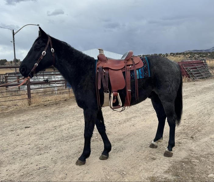 ONLINE AUCTION Place your bids at www.PlatinumEquineAuction.com Starting Bid $3500 Auction ends January 19th, 2025 Need a new saddle? Check out White Rock Saddles on our website or Facebook! Captain is 6 year old, 15.2H, Blue Roan, grade quarter horse gelding who is a very sweet and friendly horse that loves attention. He has such a great personality definitely one of a kind! He’ll be the first to meet you at the gate. He stands well for shoes. He trailers well, stands tied. He is not a beginner horse but he is started on neck reining, would be great for any job when finished. Located in Dorlores, CO. Contact Gena Gear 559-280-3442 with any questions. ONLINE AUCTION Place your bids at www.PlatinumEquineAuction.com Starting Bid $3500 Auction ends January 19th, 2025 Need a new saddle? Check out White Rock Saddles on our website or Facebook!