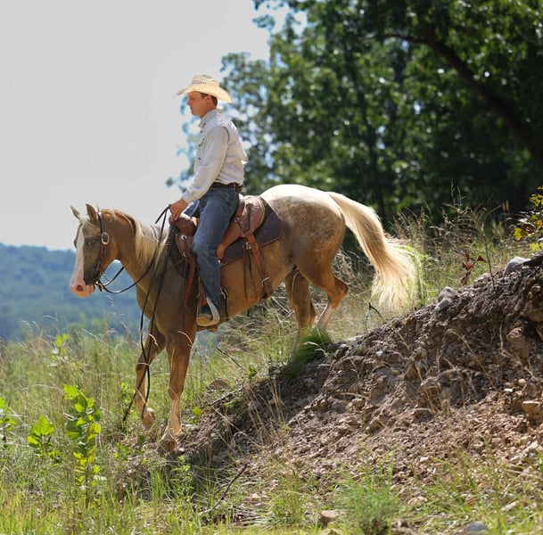 ONLINE AUCTION Place your bids at www.PlatinumEquineAuction.com Starting Bid $3500 Auction ends September 7th, 2025 Need a new saddle? Check out White Rock Saddles on our website or Facebook Meet Ricky Bobby! Introducing Ricky your palomino prince! A 7 year old grade POA Gelding. Ricky is the full all around package, standing 14.1 HH but built to last. Ricky has a beautiful confirmation, a good foot, clean legged, deep in the chest with a very nice hip. Ricky Bobby is everyone’s night in shining armor, he has the personality of a saint. Always the first to greet you at the gate, easy to catch awaiting whatever adventure you point him towards. Want to lead your kid around the yard? He’s solid. Trail ride through the trees, water, wildlife, vehicles? Ricky is going to take care of you every step of the way. Ricky is not only a joy to pleasure ride but is an athlete in and out of the arena. This young, athletic gelding has smooth lead departures, rides soft in the face and moves off your leg beautifully with a nice stop. Ricky has a true one hand neck rein, whether you’re asking him to lope circles or a nice spin he’s got you covered. Ricky is incredibly versatile, he’s gentle and quiet enough for the kids to take to play days or you can take him on a hard days work. This exceptional gelding has roped and doctored in the pasture and been used to push cattle at the sale barn and will go as long as you ask. Ricky sells 100% sound and sane. Call AM Equine Alexis 660-438 0306 for further questions. Located in Cole Camp, MO. ONLINE AUCTION Place your bids at www.PlatinumEquineAuction.com Starting Bid $3500 Auction ends September 7th, 2025 Need a new saddle? Check out White Rock Saddles on our website or Facebook