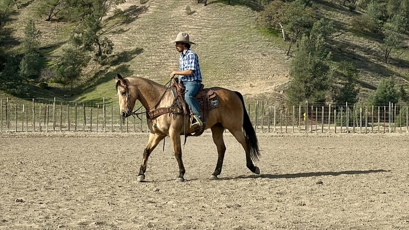 ONLINE AUCTION Place your bids at www.PlatinumEquineAuction.com Starting Bid $3500 Auction ends January 11th, 2025 Need a new saddle? Check out White Rock Saddles on our website or Facebook Start the New Year off right — with a horse that’s comfortable in many roles. He is a stout, good-looking 8- year-old, 15-hand buckskin gelding that comes with a whole toolbox: superior trail horse, handy ranch horse, and started roping the lead steer. He’s the kind you can use all week and still enjoy on the weekend — honest, user-friendly, and easy to get along with. Out on the trail, Aloe is the real deal. He’ll go anywhere you point him — steep hills, brush, rocks, downed trees, and water — and he stays sensible around wildlife and traffic. He’s confident without being pushy, and he takes care of his rider when the terrain gets rough or the world gets loud. In the arena, he’s smooth and comfortable — the kind that makes you want to keep riding “just one more lap.” He’s soft in the face, gives at the poll, moves off your leg, and lopes slow and collected like a rocking chair. He has a nice handle, a solid stop, and backs easily, and he’s the type that stays willing and moldable for different levels of riders. Aloe has also been exposed to a pile of “extras” and takes it in stride — flags, tarps, bouncy balls, obstacles, bridges, tires, pool noodles, and more. Need to drag something? He’s been there. Want a horse that doesn’t make a production out of new stuff? That’s Aloe. He’s also simple in the day-to-day: hauls well, stands tied, clips, and is good for the farrier. He’ll ride out alone or in a group and stays the same steady, usable gelding wherever you point him. If you’re looking for one that’s honest, usable, and versatile — the kind that can be your trail partner, ranch hand, and arena ride all in one — Aloe is the one to start the year with. Contact us to come meet Aloe and get all the details — he’s the kind that’s even better in person, and we’re happy to visit with you and help you decide if he’s the right fit. Nationwide shipping available with our trusted haulers — we can help get Aloe delivered safely to his new home anywhere. Dina — Longhorn Ranch 831-537-1915 Paicines, CA ONLINE AUCTION Place your bids at www.PlatinumEquineAuction.com Starting Bid $3500 Auction ends January 11th, 2025 Need a new saddle? Check out White Rock Saddles on our website or Facebook