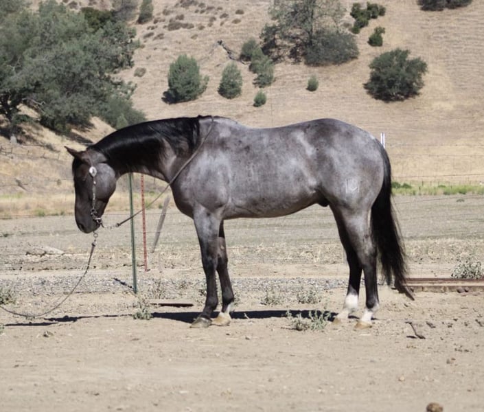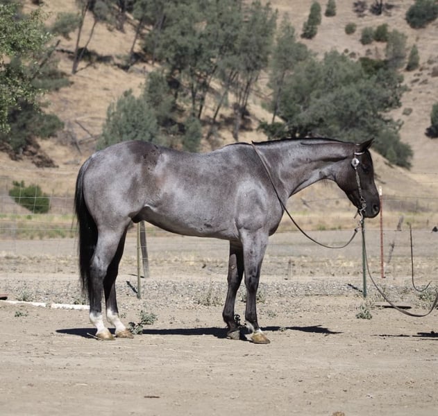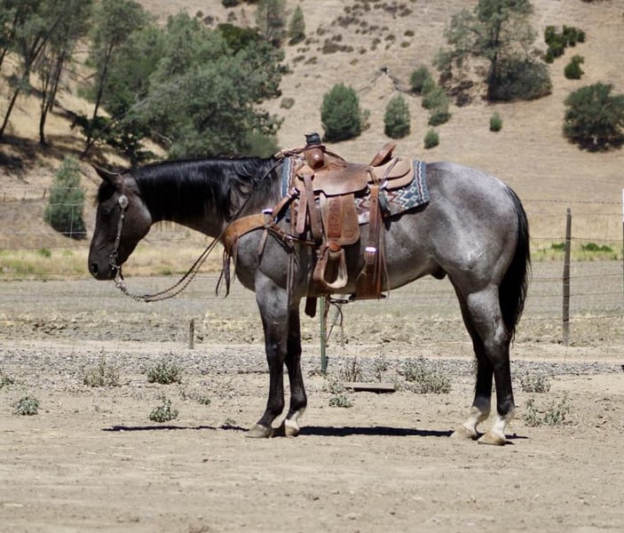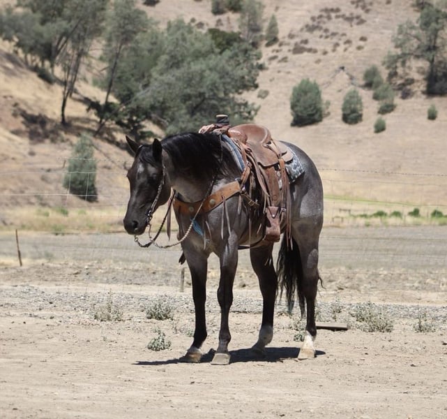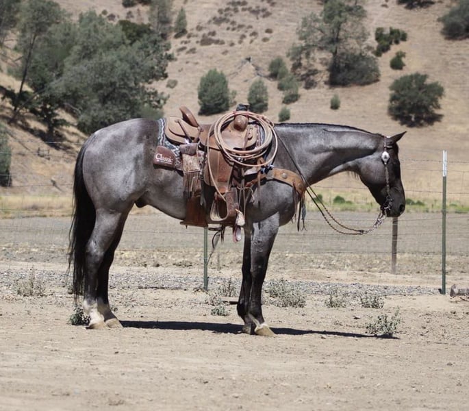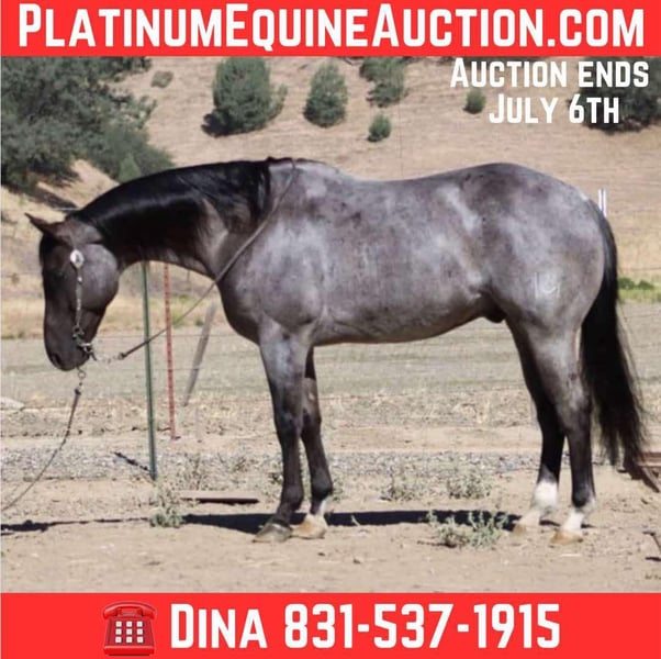 ONLINE AUCTION Place your bids at www.PlatinumEquineAuction.com Starting Bid $3500 Auction ends July 6 2025 Need a new saddle? Check out White Rock Saddles on our website or Facebook! Attention all equine enthusiasts! Allow me to introduce Aqua Man, the magnificent 7-year-old blue roan gelding who will capture your heart with just one ride. Standing proud at a height of 15 hands, this experienced gentleman has mastered countless tasks. Whether it’s branding calves or rounding up livestock, sorting, or any other ranch task, Aqua Man has proven himself to be a faithful ranch hand. On top of that, he boasts exceptional training, with a smooth and elegant collected lope, a seamless sliding stop, and a turn that will surely put a smile on your face. His circles are precise and accurate, and his movements are fluid and effortless. To top it all off, he is a gentle and trusty mount, suitable for riders of any skill level. When out on the trail, he fearlessly tackles any terrain, whether it’s narrow paths, deep waters, or logs to climb over. He navigates with grace and confidence, making him an ideal companion for outdoor adventures. He has happily participated in group treks and has no problem riding solo. He is also acclimated to various obstacles, calmly crossing bridges, cowboy curtains, and tires with ease. Aqua Man is a horse that the entire family can adore, excelling in any discipline. We have taken him down bustling streets, and he has been an absolute champ, willing to do whatever is asked of him. He is also a breeze to handle, catch, clip, and bathe, and he stands patiently for the farrier. He is an absolute delight to be around, and he will undoubtedly be the lifelong partner you have been searching for. If you are interested in meeting this incredible horse, please contact Dina at Longhorn Ranch 831-537-1915, located in Paicines, California. Don’t miss out on your dream horse! ONLINE AUCTION Place your bids at www.PlatinumEquineAuction.com Starting Bid $3500 Auction ends July 6 2025 Need a new saddle? Check out White Rock Saddles on our website or Facebook!