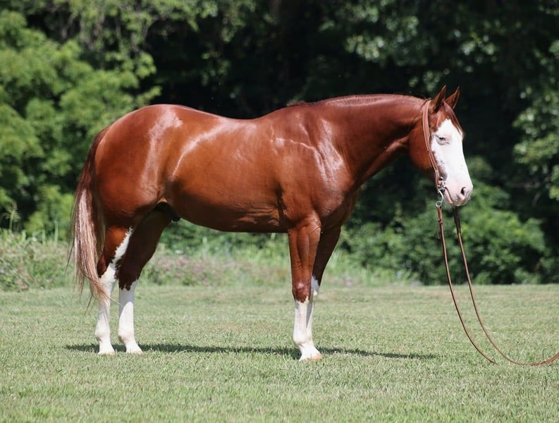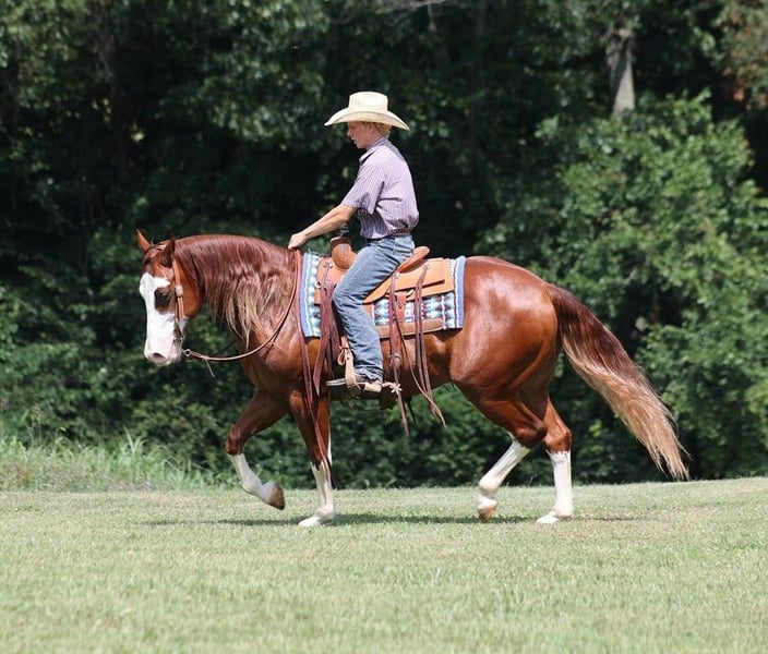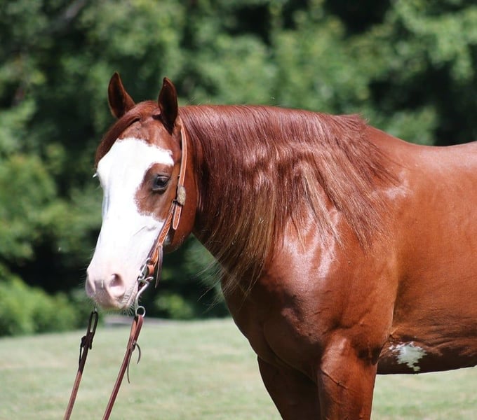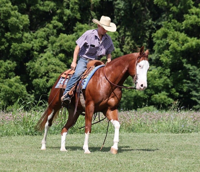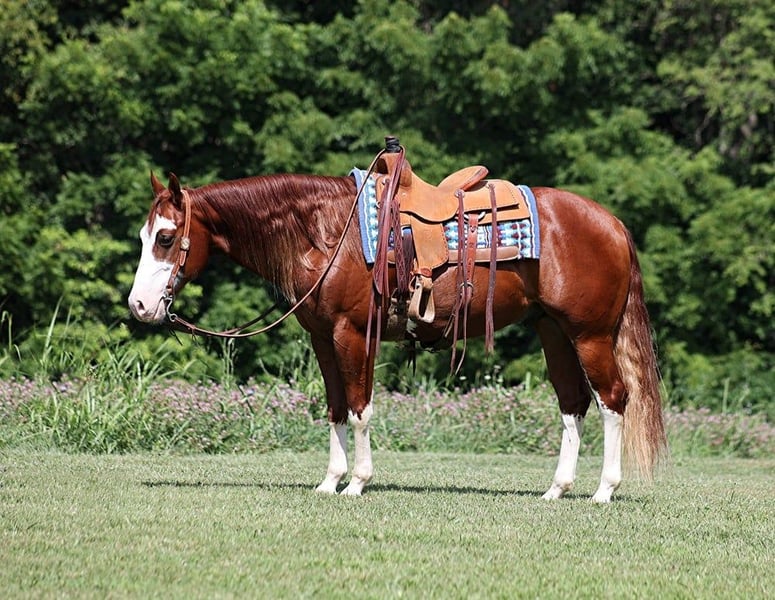 ONLINE AUCTION Place your bids at www.PlatinumEquineAuction.com Starting Bid $3500 Auction ends August 18th, 2024 Need a new saddle? Check out White Rock Saddles on our website or Facebook! All’s Lip Smacking Good aka Smack is a stout built Chestnut Overo horse standing around 15.1hh and he is a 2018 Model Registered APHA Gelding. He has an excellent pedigree going back to the famous Topsail Whiz who is an AQHA Hall Of Famer who has sired over $12 Million Dollars in offspring. The Topsail Whiz bloodline is well known throughout the reining world and also in the cowhorse world. Since owning Smack he has been used at the stockyards to pen cattle, we’ve had him out in the pasture gathering cattle and he has roped a couple as well. He has been started on the roping dummy and is doing a good job tracking it. He knows his way around the ranch and has plenty of cow sense. Smack is an excellent horse to take for a relaxing trail ride as he is great on trails and he will cross creeks, ditches, logs and navigate rough rocky areas. He has a smooth jog, a VERY VERY nice easy to set lope, a good stop, turns a circle both ways and backs with ease! Smack has had some reining training and would be an excellent horse to enter the show pen in the ranch horse classes. He rides with his head low and will keep a loose/draped rein. He has been exposed to all kinds of wildlife. He will go up or down steep slopes, across deep creeks, over downed trees, and over all types of rough terrain while still being sure footed. He has been ridden through town and is safe in traffic is not spooky. Smack is an excellent horse for any job around the ranch or trails! He is located in Level Green, KY. Feel free to call Moore Trained Horses Logan 765-265-0033 with any questions. ONLINE AUCTION Place your bids at www.PlatinumEquineAuction.com Starting Bid $3500 Auction ends August 18th, 2024 Need a new saddle? Check out White Rock Saddles on our website or Facebook!