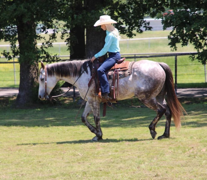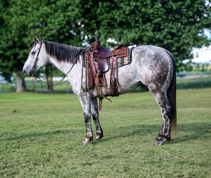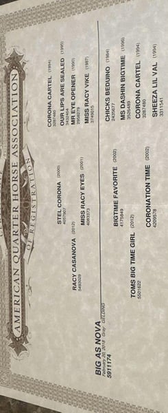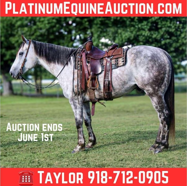 ONLINE AUCTION Place your bids at www.PlatinumEquineAuction.com Starting Bid $3500 Auction ends June 1st, 2025 Need a new saddle? Check out White Rock Saddles on our website or Facebook! “Big As Nova” AKA “Archie” is a 7 year old AQHA registered gelding. He will stand 15.2 hands and weigh 1275 lbs. Archie is the complete package- beauty, brains, training, and not to mention drop dead gorgeous! He has been in good hands his whole life and has always had the best of care! Archie is very gentle and always wants to please. He is one hand broke, rides the very best on a loose rein, low headed with a ton of eye appeal, and a good stop! He has beautiful transitions and has all the buttons one needs while still being user friendly! Archie has also had some barrel horse training and is ready to start seasoning if you choose to do so! He stays collected and has a short lope you can sit all day! He has the speed and ability to make a top notch barrel horse or head horse! He has been around all the farm animals, and seen a little bit of everything all over the ranch! Archie is a blast to take out on the trails and will handle any type of terrain you throw at him! He will cross anything in his paths such as brush, bridges, water and logs! He can handle it all day and will never quit you! Archie rides great alone, or in a group and doesn’t have a mean bone in his body! You can leave him off for month’s, he doesn’t forget a thing and will ride off the same way you left him! The possibility’s are endless for this fancy one of a kind gelding! He is the right age and at the prime of his life! He is very well broke, has all the athletic ability, buttons, and try in the world to excel in any discipline you throw at him! He is easy to catch out in the pasture, or in a stall, and always wants to be your friend! Archie is only being offered due to me going to college and not having the time to use him to his full ability he deserves! He needs to go be someone’s #1 whether it is in the arena, on the ranch, or down the trails! He is a true quality ranch horse, trail horse, show horse, or performance horse. Archie is up to date on his vaccines, worming, and coggins! Located in Sallisaw, OK! If you have any questions or concerns, please call or text Taylor at 918-712-0905! If you have any questions regarding transport, please reach out! I am more than happy to assist you in setting up dependable shipping no matter where you are! ONLINE AUCTION Place your bids at www.PlatinumEquineAuction.com Starting Bid $3500 Auction ends June 1st, 2025 Need a new saddle? Check out White Rock Saddles on our website or Facebook!