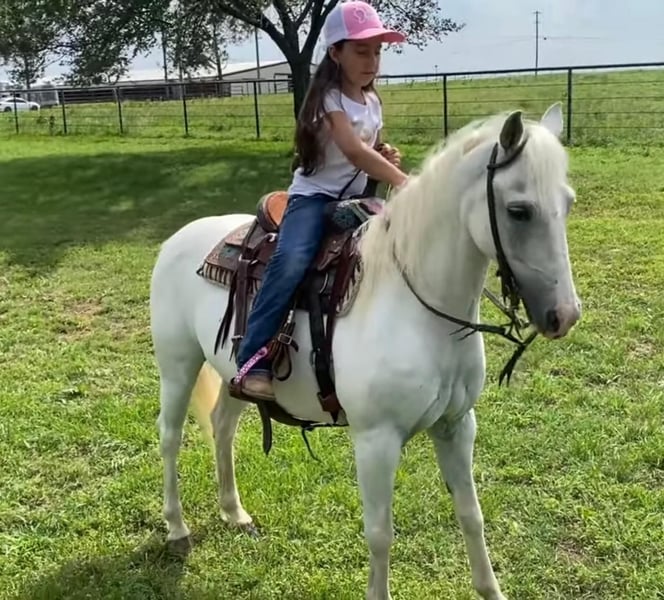 ONLINE AUCTION Place your bids at www.PlatinumEquineAuction.com Starting Bid $3500 Auction ends June 23rd, 2024 Need a new saddle? Check out White Rock Saddles on our website or Facebook! Pegaso is 7 yr old grade pony he stands 12’2 hands tall he’s the coolest pony in our barn. We use him on the ranch from checking on mama cows to checking fence. He’s been doctoring yearlings with the big horses he’s So handy and willing. We’ve been hauling him to the play days for the kidos and to team ropings he’s wiked cool on the heel side. He’s good in the box he has plenty of go to compete and has plenty of try. We love him and we’re very happy he’s been part of our family, any youth rider would absolutely love him as a step up horse and win on him. Pegaso is also a trick pony he lays down and he’s a dancer he loves to jam out and do a little dancing he’s the coolest. He’s once in a life time all around pony he sells 100% sound and gentle. Located in Gainesville TX . Please feel free call for any questions! Lauren Lara 915-474-5453. ONLINE AUCTION Place your bids at www.PlatinumEquineAuction.com Starting Bid $3500 Auction ends June 23rd, 2024 Need a new saddle? Check out White Rock Saddles on our website or Facebook!