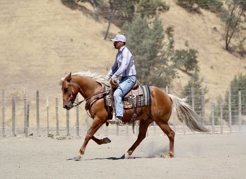 ONLINE AUCTION Place your bids at www.PlatinumEquineAuction.com Starting Bid $3500 Auction ends July 28th, 2024 Need a new saddle? Check out White Rock Saddles on our website or Facebook! Let me introduce you to the most beautiful horse you have ever seen. Herbie is fun size for sure. Not only is he jaw dropping gorgeous but rides like a dream. He’s 13.3HH and 7 years old making him easy for anyone to mount. Herbie is like a little Mac tuck with his huge hip and deep girth. Herbie is broke will turn with the touch of a rein, move off leg cues and is very responsive. He lopes nice easy, correct circles. Herbie is easy to navigate making him diverse for all types of riders. He is very safe and confident in most any situation. He will be a show stopper out on the trail or in the arena. Herbie has been used on the ranch and will handle a days work no problem. He’s cowy and confident and has had top hand training. He has branded and been started in the roping pen and is coming along nicely. He is a trail connoisseur. He will fallow the narrowest trail and be sure footed. He crosses water, logs, brush, and has encountered lots of wild animals. He is good to be around super gentle and friendly. He has a good foward movement and substance to him. Herbie gets attention anywhere he goes with his deep golden color and blonde mane and tail. Herbies has done trail obstacles and maintaines his gentle disposition. He has been to town giving him real world experiences with motorcyclists, sidewalks, bridges, dogs, trains and has proven to be solid. He is super out on the trail and will ride in a group setting or take a him out alone and he’s ready for any adventure. He tacks up easy and is quiet and patient. Herbie clips, ties, bathes and is good for the farrier and vet appointments. This horse is will steel the show no matter where you take him with his beauty. He is the definition of a horse with great confirmation. Herbie can be your best friend and trail partner or take him to the arena for some fun. He will be the prettiest horse anywhere you take him and you will be the envy of everyone. This boy will take the worry out of riding with his calm and cool disposition. Don’t miss this rare opportunity to own the classiest horse around. Please contact Longhorn Ranch Dina 831-537-1915 located in Paicines, CA. ONLINE AUCTION Place your bids at www.PlatinumEquineAuction.com Starting Bid $3500 Auction ends July 28th, 2024 Need a new saddle? Check out White Rock Saddles on our website or Facebook!