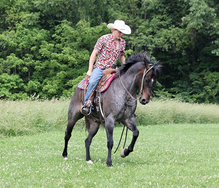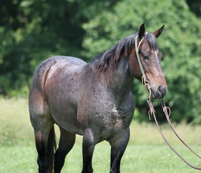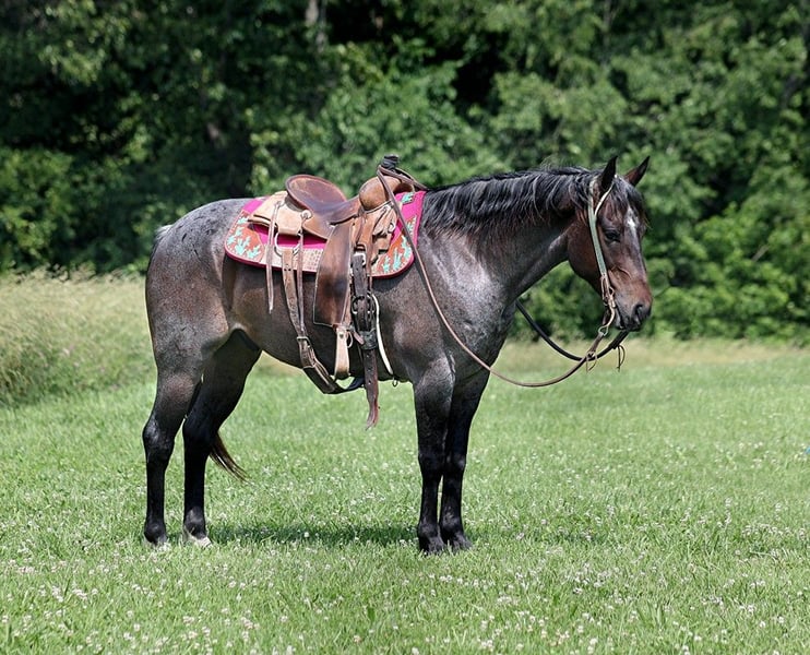 ONLINE AUCTION Place your bids at www.PlatinumEquineAuction.com Starting Bid $3500 Auction ends June 9th, 2024 Need a new saddle? Check out White Rock Saddles on our website or Facebook! Back Wook Hawke is a well built roan gelding standing around 14.2-14.3hh. He is a 2017 Model and he is registered in the AQHA with a good pedigree. Hawk has been used around the ranch and he can handle any job that is asked of him. He is handy enough for sorting, he can go out in the pasture and be roped off of, he can do it all! Hawk is an excellent trail horse and has been ridden in multiple states from South Dakota to Texas to Kentucky. He will cross creeks, ditches, logs and navigate rough rocky areas. He is safe riding in traffic. He has a smooth jog, a very smooth lope, has a good stop, turns a circle both ways and backs with ease! Hawk is a confident horse on the trails and will lead the crew, head out alone with no issues! He has been exposed to all kinds of wildlife such as deer or turkey or other animals like cows or dogs and will go anywhere that he is asked too. He has been rode many miles in the mountains of Eastern Kentucky and encountered every obstacle possible on the trail. He will go up or down even the steepest slopes, across deep creeks, over downed trees, and over all types of rough terrain while still being sure footed. Hawk is not cinchy, cold backed, does not crib or weave. Hawk is a horse that is a pleasure to look at and a pleasure to ride!!! Feel free to call Moore Trained Horses Logan 765-265-0033 with any questions. Located in Level Green, KY. ONLINE AUCTION Place your bids at www.PlatinumEquineAuction.com Starting Bid $3500 Auction ends June 9th, 2024 Need a new saddle? Check out White Rock Saddles on our website or Facebook!