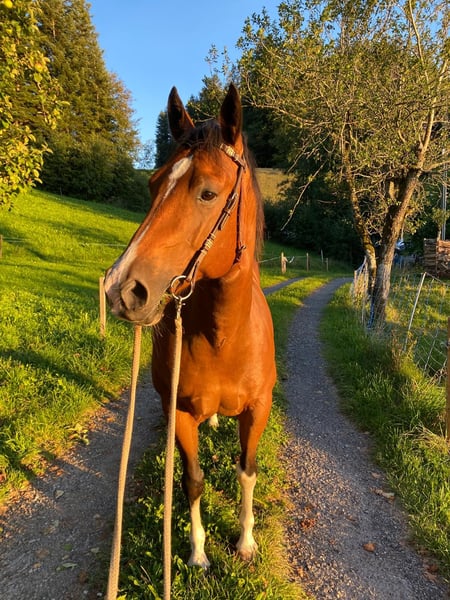 Unique gelding with heart and class seeks new home With a heavy heart, we are selling our beautiful 9-year-old gelding due to a lack of time. He is an absolute treasure, loyal, loving in handling, and a true heart horse. His curious nature makes him particularly eager to learn; he enjoys working and discovering new things. Thanks to his solid basic training, he is pleasant to ride and makes a great impression both on trails and in the arena. In the field, he is reliable and calm, whether alone or in a group. He is also very social and compatible with other horses in the stable. His top pedigree not only makes him a real eye-catcher visually but also brings that certain something, combining quality and character. A great partner for leisure riders looking for a horse with personality and potential. He is healthy and regularly dewormed. We wish for him a loving home where he receives the attention he deserves, as he is truly unique. Location: Canton of Lucerne If interested or for questions, please contact: +41 79 580 75 75 / +41 79 417 88 55. Messages will not be answered through the portal.
