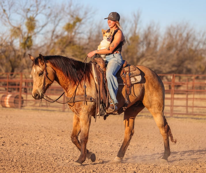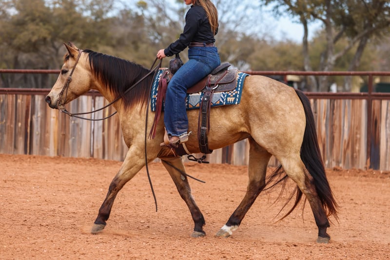ℳ𝒶𝓇𝒸𝒽 ♦️𝐑𝐈𝐃𝐄𝐑'𝐒 𝐂𝐇𝐎𝐈𝐂𝐄♦️ Happening now thru MONDAY | MARCH 9th - Available EXCLUSIVELY on HorseBid's website! For more details and to register visit: www.Horsebid.com CONSIGNOR CONTACT: Bond Ranch & Performance Horses 615-854-6883 LOCATION: Ranger, TX BREED: QH REGISTERED: Yes REGISTERED NAME: Nacho Traffic Guy COLOR: Buckskin HEIGHT: 15.1 AGE: 9 GENDER: Gelding Nacho is a striking buckskin gelding with the kind of versatility, disposition, and eye appeal that make him a true standout. Quiet, kind, and exceptionally well-mannered, he is the type of horse that fits seamlessly into any program. Nacho has proven himself to be safe, sane and simple to ride in every situation. Fancy when it counts and gentle enough for the whole family. He handles cattle confidently, stays level-headed, and carries himself with the steadiness you want in a reliable partner. On the trail, Nacho is sure-footed and relaxed, traveling out willingly and taking new scenery in stride. In the arena, Nacho is well started on the head side and shows excellent promise as a versatile rope horse. He is responsive, soft in the bridle, and rides around with balance and style. Show pen ready and capable of stepping in to compete, he remains forgiving and suitable for riders of varying experience levels. Under English saddle, Nacho moves beautifully, carrying himself with balance and fluidity through his gaits. One of his greatest qualities is his exceptional ground manners — he is respectful, easy to handle, and a pleasure to be around in every setting. Beyond his talent and training, Nacho is incredibly sweet and personable. He genuinely enjoys attention and is easy to get along with, making him a favorite in the barn. He does not require daily riding to stay broke, maintaining his quiet, steady nature even with time off. With his eye-catching buckskin color, kind personality, and well-rounded résumé, Nacho is the kind of gelding that will make someone proud whether on the ranch, in the arena, or out on the trail.
