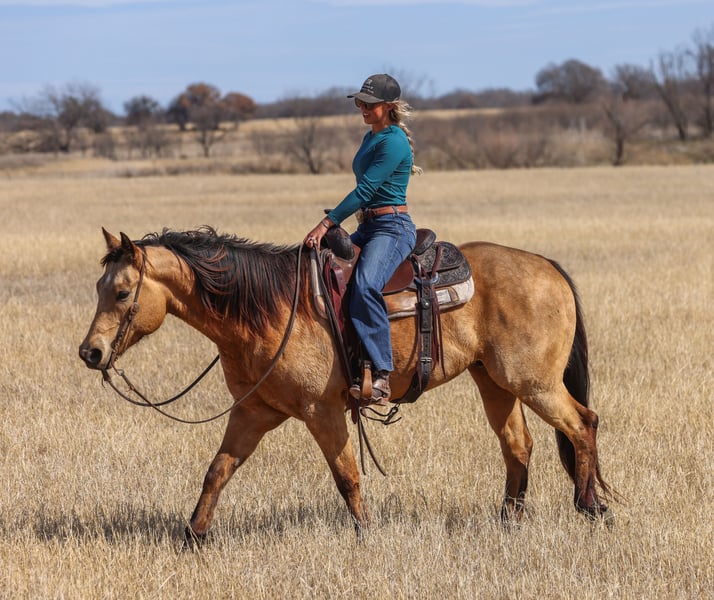 Nacho, 9 jaar oud, 15.1 hh buckskin AQHA ruin