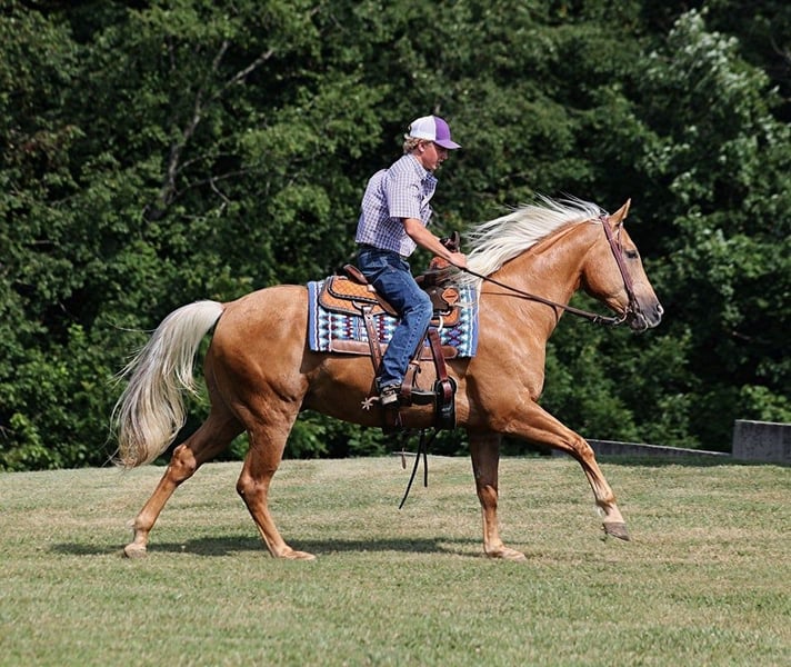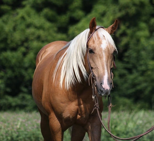 ONLINE AUCTION Place your bids at www.PlatinumEquineAuction.com Starting Bid $3500 Auction ends July 21st, 2024 Need a new saddle? Check out White Rock Saddles on our website or Facebook! ARC Jacs Gold Charm is living proof that Dream horses do exist! Talk about a horse that gets ALL of the looks where ever he goes!!! Jac is a super stout built Golden Palomino 2017 Registered AQHA gelding standing around 15.1hh. I’v had Jac since back in the winter and he has been used to around cattle, pasture roped and used to doctor as well. He has been ridden down the highways, we have had him in town and he is very traffic safe. Jac is great on trails and he will cross creeks, ditches, logs and navigate rough rocky areas. He has a smooth jog, a VERY VERY nice easy to set lope, a good stop, turns a circle both ways and backs with ease! He has been exposed to all kinds of wildlife such as deer or turkey or other animals like cows or dogs and will go anywhere that he is asked too. He has been rode many miles in the mountains of Eastern Kentucky and encountered every obstacle possible on the trail. He will go up or down even the steepest slopes, across deep creeks, over downed trees, and over all types of rough terrain while still being sure footed. Jac is a gentle, laid back type of horse that is not in a hurry and would be a great horse for the whole family! Jac is not cinchy, cold backed, does not crib or weave. Located in Level Green, KY. Feel free to call Moore Trained Horses Logan 765-265-0033 with any questions. ONLINE AUCTION Place your bids at www.PlatinumEquineAuction.com Starting Bid $3500 Auction ends July 21st, 2024 Need a new saddle? Check out White Rock Saddles on our website or Facebook!