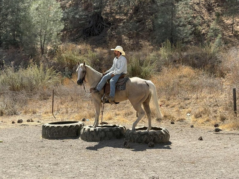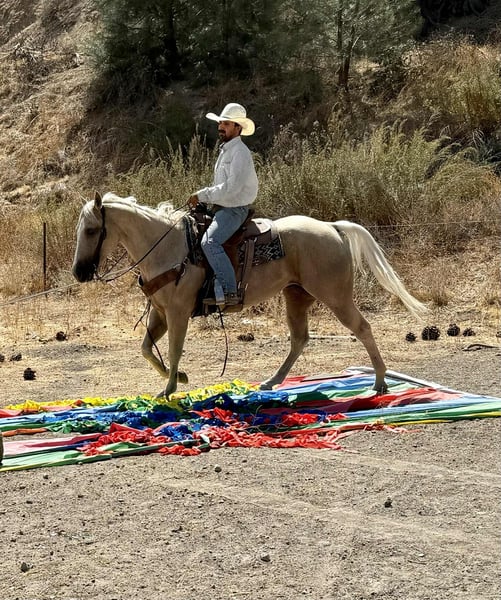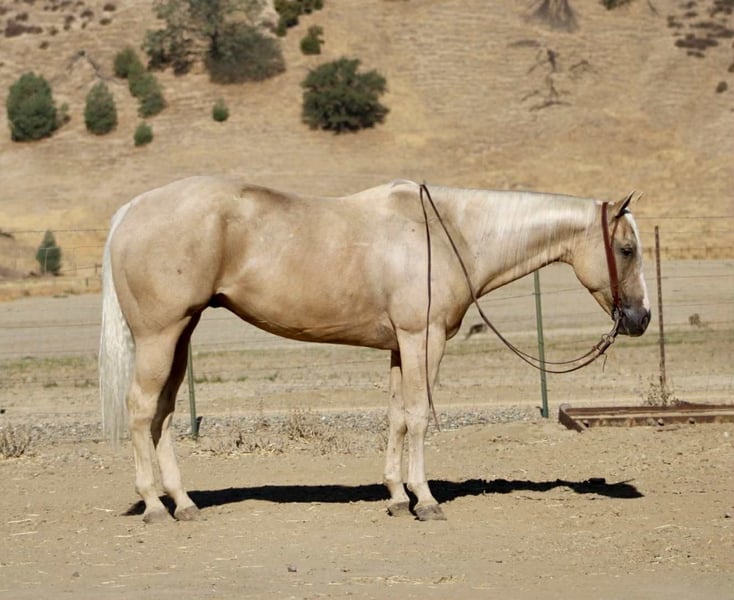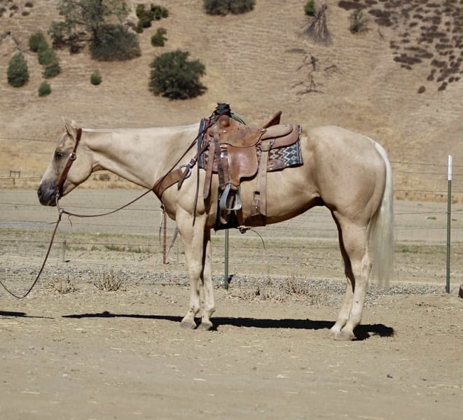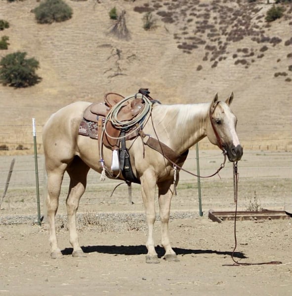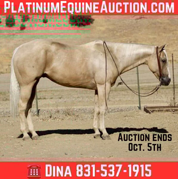 ONLINE AUCTION Place your bids at www.PlatinumEquineAuction.com Starting Bid $3500 Auction ends October 5th, 2025 Need a new saddle? Check out White Rock Saddles on our website or Facebook 777 Jackpot – The Winning Ticket Palomino!!! Every once in a while, you hit the jackpot — and this horse is exactly that. Meet 777 Jackpot, an 8-year-old, 15.1-hand golden palomino gelding who is as gentle, kind, and safe as they come. If you’ve been waiting for a mount that feels like striking gold every time you saddle up, this is the one you won’t want to pass by. On the trail, Jackpot is in a class of his own. He’s the kind of gelding you can point at anything — water crossings, steep hills, bridges, brush, logs, or rocky terrain — and he’ll step through with confidence and ease. Cars, semis, bicycles, wildlife jumping out of the brush — none of it bothers him. He’ll ride out alone with quiet confidence or settle into a group, happy to lead the way or follow along in the back. He’s steady, sure-footed, and always willing, making him the ultimate trail partner. Jackpot is just as steady in other settings. He’s been used on the ranch to drag calves, move cattle, and handle honest work without fuss. In the arena, he rides low-headed and collected, picks up his leads with ease, has a smooth turnaround, and stops and backs willingly. He’s correct, forgiving, and makes riding fun and simple for any rider. What sets him apart is just how unflappable he is. Tarps, bouncy balls, flags, traffic, bridges, wildlife — none of it phases him. He’ll ride bridleless, go through water, and step over or around any obstacle you point him at with a calm, willing attitude. On ground, he’s as easy as they come — exceptionally friendly, ties, hauls, saddles, and bridles without a fuss, and stands well for the farrier and vet. Jackpot isn’t just another pretty palomino — he’s one of those rare geldings that are just good no matter what you ask of him. If you’ve been searching for a safe, seasoned, and reliable trail horse who also shines in the arena and on the ranch, 777 Jackpot is your winning ticket. Contact: Dina with Longhorn Ranch 831-537-1915 Located in Paicines, CA with shipping available anywhere in the US. ONLINE AUCTION Place your bids at www.PlatinumEquineAuction.com Starting Bid $3500 Auction ends October 5th, 2025 Need a new saddle? Check out White Rock Saddles on our website or Facebook