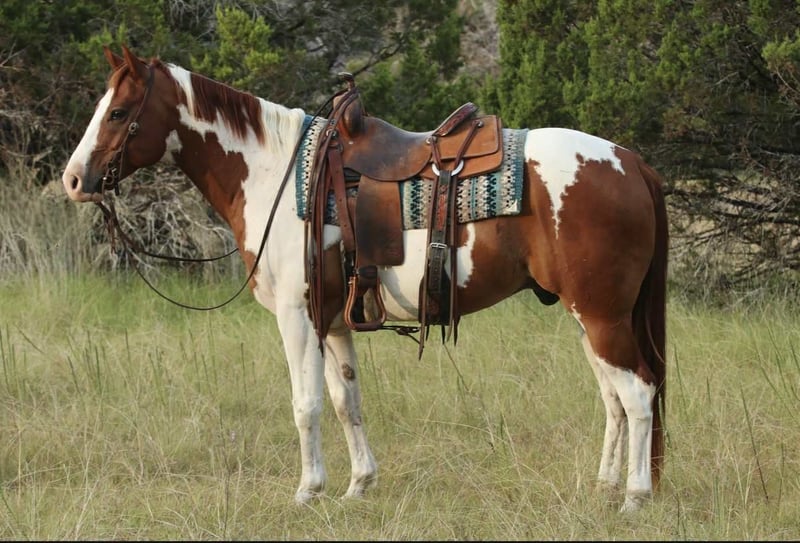 ONLINE AUCTION Place your bids at www.PlatinumEquineAuction.com Starting Bid $3500 Auction ends September 28th, 2025 Need a new saddle? Check out White Rock Saddles on our website or Facebook ✨ The Kind That Turns Heads & Wins Hearts ✨ Meet Poptart—the 8-year-old grade paint gelding with the kind of loud, flashy coloring that makes everyone stop and stare. He’s that once-in-a-lifetime pretty horse, but what makes him truly special is how kind, gentle, and easygoing he is to be around. Poptart has the kind of personality everyone wants in their pasture: sweet, uncomplicated, and always willing. He loves attention, stands quietly to be brushed and saddled, and makes you look forward to riding. Out on the trails, Poptart shines. He’s steady, quiet, and confident—the kind that will mosey along without a care in the world. He’s not in a hurry, doesn’t get hot, and goes wherever you point him without a fuss. He crosses water, steps over logs, and takes new scenery in stride. No, Poptart isn’t “fancy broke,” but he’s the type that makes riding enjoyable again. He’s smooth, uncomplicated, and doesn’t require a lot of buttons to have fun. Whether you’re looking for a relaxing weekend ride, a solid horse for your family, or just a pretty gelding to enjoy, Poptart will fit the bill. Here are some highlights about Poptart: • 8 years old – prime age with many years ahead • Gentle & easygoing – perfect for a laid-back ride • Stunning paint coloring – guaranteed to turn heads • Trail ready – happy to go wherever you point him • Uncomplicated – simple, fun, and reliable We’re located in Lipan, Texas, but don’t let distance stop you—we have reputable, nationwide haulers available, including routes to Hawaii and Canada. Call or text Makenna Hartzell 817-659-3778 for more information. ONLINE AUCTION Place your bids at www.PlatinumEquineAuction.com Starting Bid $3500 Auction ends September 28th, 2025 Need a new saddle? Check out White Rock Saddles on our website or Facebook