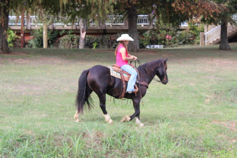 ONLINE AUCTION Place your bids at www.PlatinumEquineAuction.com Starting Bid $3500 Auction ends November 2nd, 2025 Need a new saddle? Check out White Rock Saddles on our website or Facebook Hercules is a stunning black crossbred gelding, with 4 white feet, featuring and big mane and tail he is sure to get you noticed everywhere you go! Hercules is 8 years old, he is 15.1 hands tall and stout. Bred for athleticism and beauty, he boasts elegant movement and a trainable mind. Hercules has been rode extensively outside, for all aspects of ranch work, from roping and doctoring cattle outside to sorting in the pens he has done it all! Hercules has a solid neck rein, has a good stop, he pivots nicely and works great off leg pressure! He goes anywhere he is asked and always has a willing attitude! Hercules lopes nice circles, knows his leads and is very enjoyable to ride! Super nice all around crossbred gelding! Hercules is located in Rusk TX, nationwide shipping is available! Call or text Rachel with TR Livestock 605-370-4644 for more info. ONLINE AUCTION Place your bids at www.PlatinumEquineAuction.com Starting Bid $3500 Auction ends November 2nd, 2025 Need a new saddle? Check out White Rock Saddles on our website or Facebook