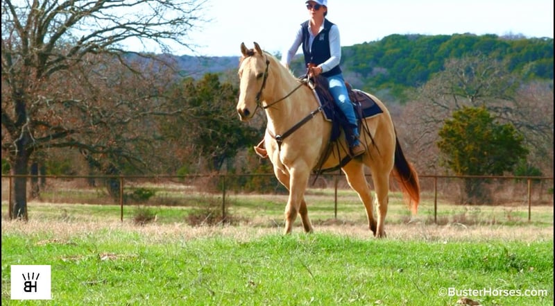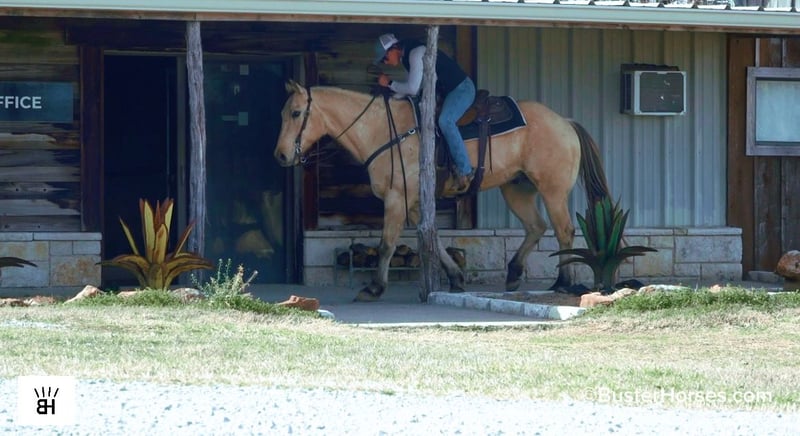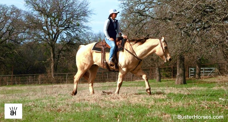 "AVAILABLE ON ONLINE HORSE AUCTION AT www DOT PlatinumEquineAuction DOT com BIDDING OPEN NOW thru SUNDAY | MARCH 1ST! *Final price will be determined on auction site* CONSIGNOR CONTACT INFO: Buster Horses 214-605-7174 LOCATION: Weatherford, TX Arnold is a 9-year-old registered AQHA buckskin gelding that is as thick made and handsome as they come. He spent time on the same Paramount sets as "Mo" (our paramount retired legendary paint gelding who just sold last month). Arnold was selected to work on a couple of different sets, after going through the same type of testing and training required for film work on productions like Yellowstone. Horses don’t make it onto those strings by accident, and Arnold proved himself to be the kind of steady, dependable mount that could be trusted day in and day out around a busy set. Outside of the lights and cameras, Arnold is enjoyable to have around for many jobs and is always easy to get along with. He’s extremely gentle to ride out, very amateur-friendly, and has a smooth, comfortable gait that makes him easy to sit and easy to get along with for a wide range of riders. He’s the kind that you have to pedal to get a trot and Lope out of in the arena, and he's amazing for amateurs to ride outside in the open as he just pitter-patters along and you can just sit there relax and enjoy the ride without having to worry about him getting away from you. He handles himself well in new environments, stays level-headed, and is happy to go about his job without needing a lot of management. Arnold has a great look, a solid mind, and a unique background that sets him apart from your average family, pleasure, or trail riding horse. He’s been exposed to commotion, traffic, and pressure, and has proven himself to be the same consistent individual whether he’s at work or at home. Please check out Buster Horses’ social media pages for additional photos and videos that will be posted leading up to sale day, and don’t hesitate to reach out with any questions. Arnold is located in Weatherford, TX – one hour from Dallas / Fort Worth International Airport. He is an easy day trip, or fun overnight trip to come and try out, from anywhere! We are experienced, knowledgeable sellers, and we can help with quickly arranging affordable shipping to any buyer’s location – we have experience shipping worldwide – including regularly to Hawaii, Canada, Mexico, Europe, and South Africa. Call Ashley with Buster Horses 214-605-7174 MORE pictures and videos at: BusterHorses.com Located in Weatherford, TX ~ West of Fort Worth, TX 1 hour from Dallas / Fort Worth International airport …and we can help with quickly arranging affordable shipping to any buyer’s location ~