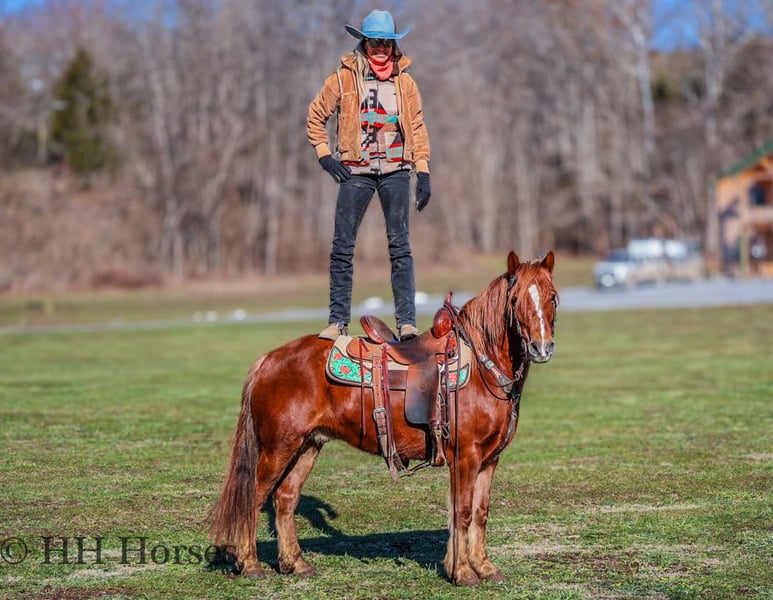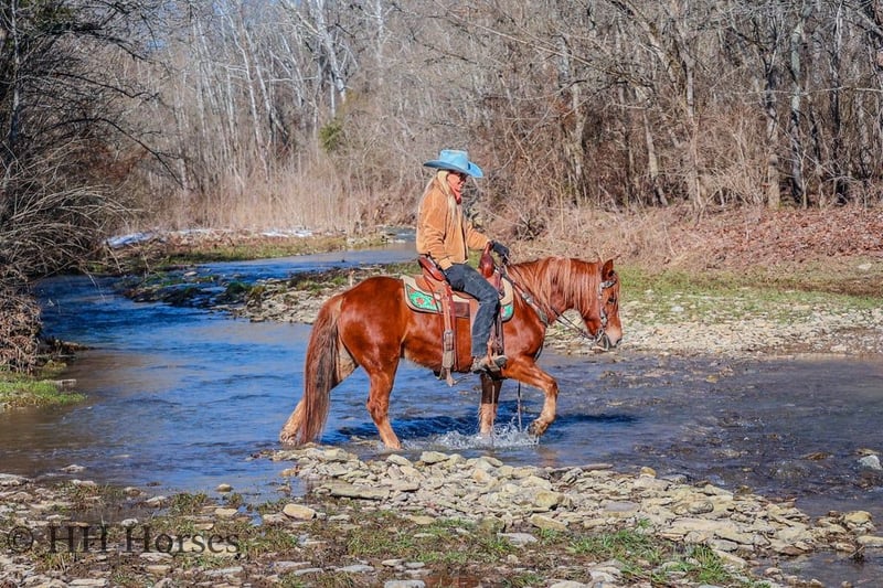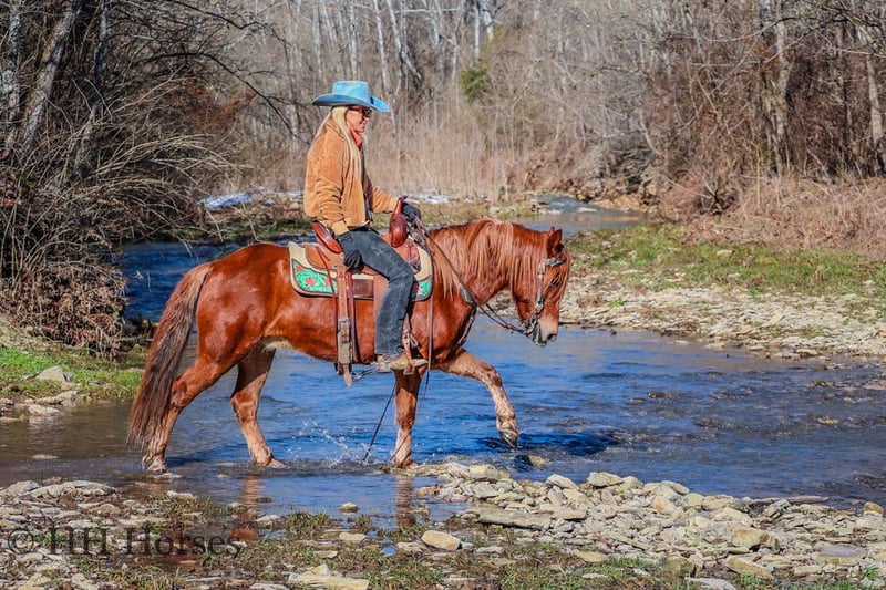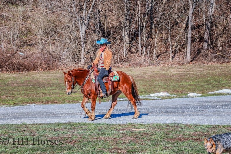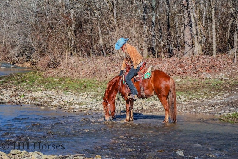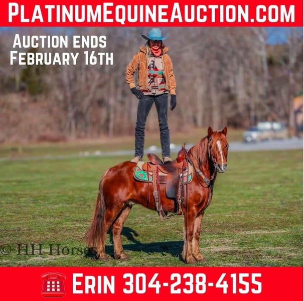 ONLINE AUCTION Place your bids at www.PlatinumEquineAuction.com Starting Bid $3500 Auction ends February 16th, 2025 Need a new saddle? Check out White Rock Saddles on our website or Facebook! This is “DR. DOOLITTLE”, a super cool and fun sorrel QUARTER PONY GELDING that is broke to ride and drive. He stands 13.1 hands tall and is 8 years old. This nice gelding is versatile, well broke, and easy to ride. He has been ridden English and Western in the arena and at the fun shows. He will lope nice collected circles, catch his leads, and stop on whoa. He will back up and move off of leg cues. He will trail ride for any level rider and take care of his mount. He will cross streams quietly and is good with. dogs. He has been on the roads and is traffic safe and not spooky. He stands tied to harness, hitch, tack, mount, and groom. He will also ride with no bridle as shown in the video. He is personable, loves attention, and aims to please. This gelding walks out nicely on a loose rein and will not go any faster than asked. He can be ridden bareback, in just a halter and lead rope, and he also rides double. He doesn’t mind if you want to do tricks with him and he is patient and calm. He handles all four feet with ease, hops right on the trailer, and hauls excellent. He is family friendly and rides out alone with confidence. He is fine in groups as well and will lead or follow. He unloads in new territory and rides off as if he has been there many times. He will make a great addition to anyone’s herd with his willing demeanor, versatile skill set, and his level of training. Don’t miss out of this nice ride if you want uncomplicated and user friendly. Located in Flemingsburg, KY. Contact HH Horses Erin 304-238-4155 with any questions. ONLINE AUCTION Place your bids at www.PlatinumEquineAuction.com Starting Bid $3500 Auction ends February 16th, 2025 Need a new saddle? Check out White Rock Saddles on our website or Facebook!