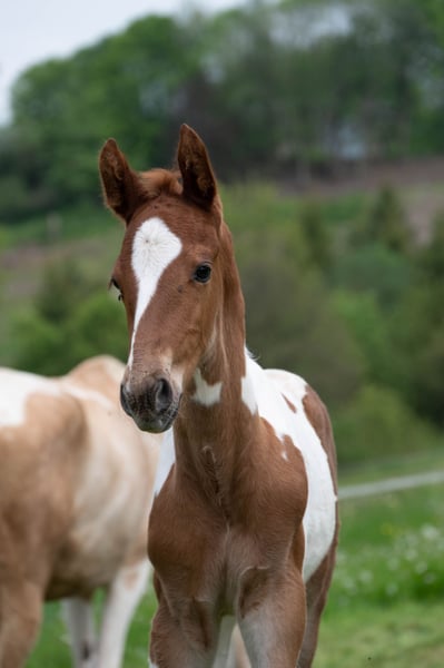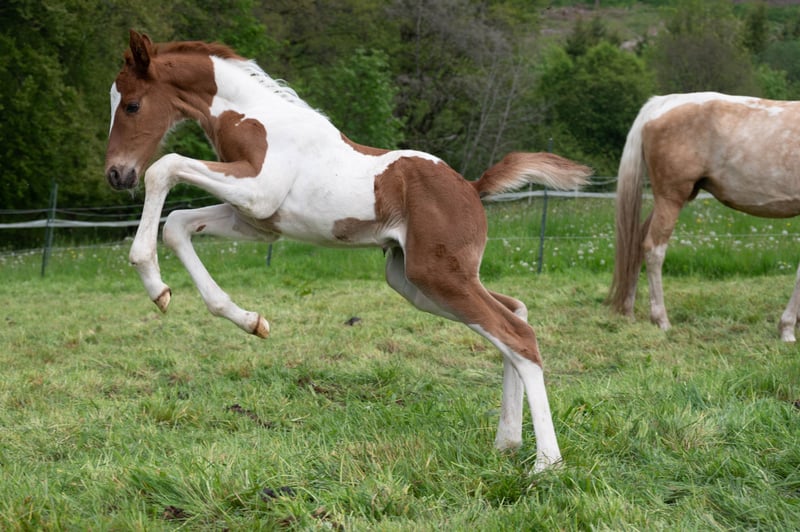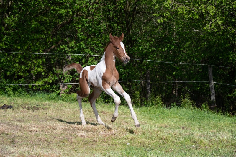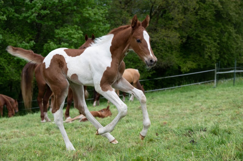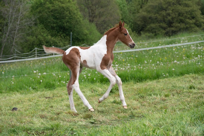 Hero (Heaven's Winged Here I Am) lives up to its name. This handsome fox-spotted young stallion was born in a herd and enjoys his foal time in his family. Such a sublime foal is rarely seen. He is already incredibly elegant, large-framed and has that certain special charisma that makes him say "Here I am!" Friendly and curious to deal with, he, like all our young horses, lets himself be touched everywhere and enjoys getting very much attention. A good dose of temperament and wit make it even more interesting. If you're looking for a visual highlight, you'll also find it here. Hero has a very appealing fox check drawing. Hero, like all our horses for sale, is sold exclusively in species-appropriate husbandry with open stable (no grip on the ground!).