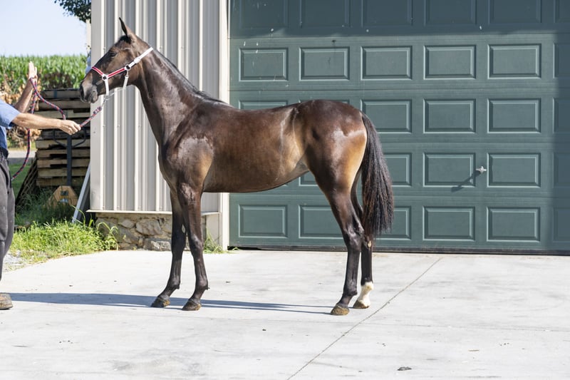 This refined bay Standardbred mare is an excellent prospect for someone seeking a young horse with powerful bloodlines and natural athleticism. Born May 8, 2024, "Magic Tape" stands 14.2 hands at just over a year old and exhibits the sure-footed movement that makes her an ideal candidate for both riding and driving disciplines. With her moderate temperament (rated 6/10), she displays the spirited yet trainable nature typical of quality Standardbreds. Ohio state-bred with USTA registration (#80PH0), she carries the refined build and powerful bloodlines that are "just begging to meet her trainer." Currently halter broke and ready for the next phase of her education, this attractive mare with her distinctive star and right hind ankle white markings represents a quality opportunity for someone looking to develop a versatile sport horse with proven Standardbred genetics. Located at Welsh Mountain Farm in Narvon, PA. Shipping Notes Call for shipping quote. We deliver anywhere.