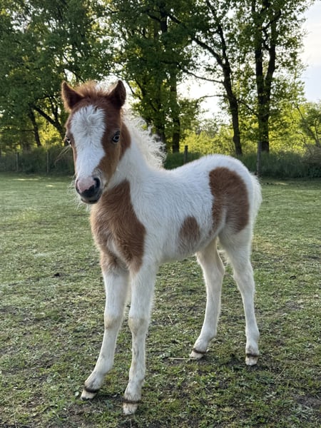 AQM Celtics Under A Violet Moon Père : AQM Fantasys A Celtic Dream Mère : Godts Wild Bluebell Né : 13.04.2025 Taille finale : environ 34“ Un poulain étalon très spécial cherche son foyer cinq étoiles. Il est long de jambes, correct, avec beaucoup de mouvement et une belle tête arabe. Son pelage original avec des yeux bleus est la cerise sur le gâteau. Je le vois dans le futur comme cheval d'attelage, pour des leçons de cirque ou des spectacles. En tout cas, ce poulain fait partie de ceux qui ont besoin d'occupation. Il ne doit en aucun cas être vendu comme simple tondeuse à gazon. Sa mère est l'un de mes chevaux d'attelage préférés et un véritable powerhouse avec de nombreux succès en spectacle. Il recevra des papiers AMHA, AMHR et EUSAM. Pour plus d'infos, photos et vidéos, suivez-nous également sur Instagram : aquamarineminiatures