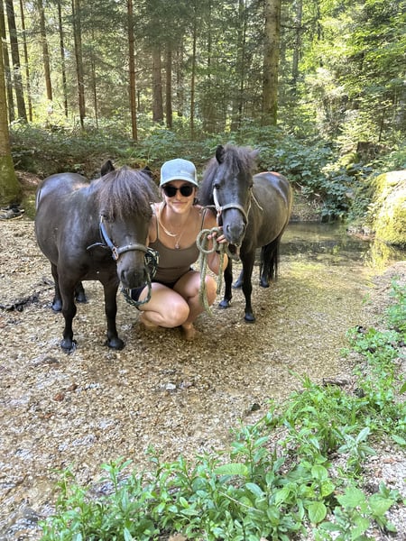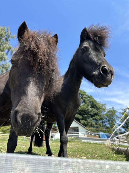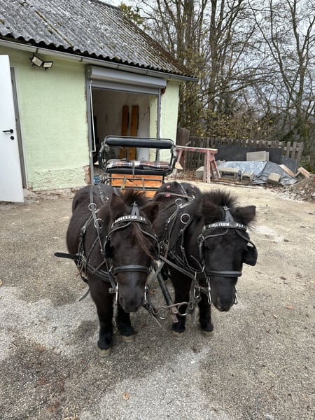 Schweren Herzens muss ich mich von meinen zwei American Miniatur Horses trennen. Zorro und Stella sind Vollgeschwister - Stella wurde 2012 geboren und besitzt Papiere. Zorro wurde 2013 geboren und besitzt keine Papiere, da zu diesem Zeitpunkt die Zucht aufgeben wurde. Die zwei laufen leidenschaftlich gerne vor der Kutsche. Spaziergänge und auch longieren mögen sie auch sehr gerne und sind dabei sehr artig. Die beiden durften auch bereits 2 Mal auf einem Adventmarkt vor der Kutsche laufen - ein Highlight für alle kleineren aber auch großen Besucher! Aktuell stehen sie gemeinsam in einem kleinen Offenstall. Die zwei sind seit Geburt zusammen und wurden noch nie voneinander getrennt. Sie werden ausschließlich gemeinsam abgegen! Kein Notverkauf - gesucht wird ein 5Sterne zu Hause, in dem sie viel Aufmerksamkeit bekommen. Zorro ist komplett gesund - Stella hat ein wenig mit Ekzem/ trockenen Stellen zu kämpfen, aber nicht arg. Im Sommer braucht sie keine Decke! Sie hatte letztes Jahr mit den Knien zu tun - dieses Problem konnten wir aber mit Muskelaufbau gut beheben. Die beiden werden mit einem Rundumpacket abgegeben. Kutsche, Geschirre, 2 Decken, Putzzeug und einige Kleinigkeiten.