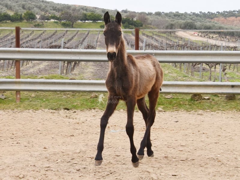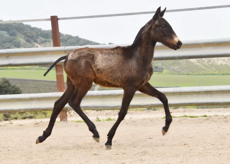 lieber Charakter, roh, steht mit anderen Fohlen draußen, gute Bewegungen, spezielle Farbe www.elegante-andalusier.com