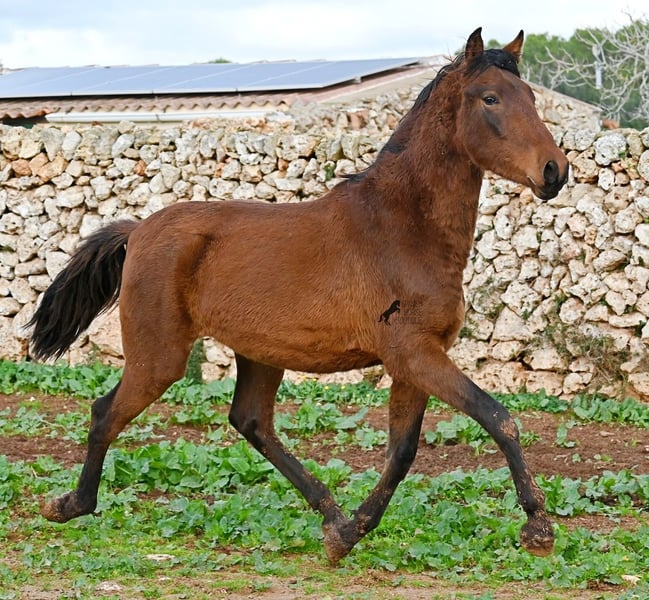 Noch ist dieser 2024 geborene PRE Hengst (Andalusier mit Rassenachweis der ANCCE), ein süßer Schatz. Aber ers gibt schon Momente, wo er sich stolz in der Bewegung präsentiert und zeigt, was er für ein schicker Kerl wird ;) Väterlicherseits hat er viel Escalera-Blut in der Abstammung und daher kommt bestimmt auch sein menschenfreundlicher, offener Charakter. Denn immer wieder kam er neugierig zu mir im Freilauf, um kurz Hallo zu sagen. Der Züchter legt großen Wert darauf, dass die Hengste bis mindestens 3 Jahre in der Hengstherde aufwachsen. So kommt es, dass er bei der Regensaison auf Menorca plüschiges Fell und etwas Panier im Fell hat, aber nur ein Indiz auf das natürliche Aufwachsen ;) Der Youngster ist sehr neugierig und aufgeschlossen und hat keinerlei Hengstmanieren, wobei er noch komplett roh ist. Er hat eine schöne Bewegung und sein zu erwartendes Endmaß wird leicht über 160cm liegen. Für all jene die keinen Hengst halten können, besteht natürlich auch die Option der Kastration vor Ort. Sein Standort ist Menorca. Videos und Abstammung gerne auf Anfrage. Gerne organisiere ich vor Ort eine AKU, Beritt, Kastration, Transport oder auch ihre Reise, sollten Sie persönlich zum Anschauen kommen. Details dazu gerne auf meiner Seite oder im Gespräch. Saludos aus Spanien