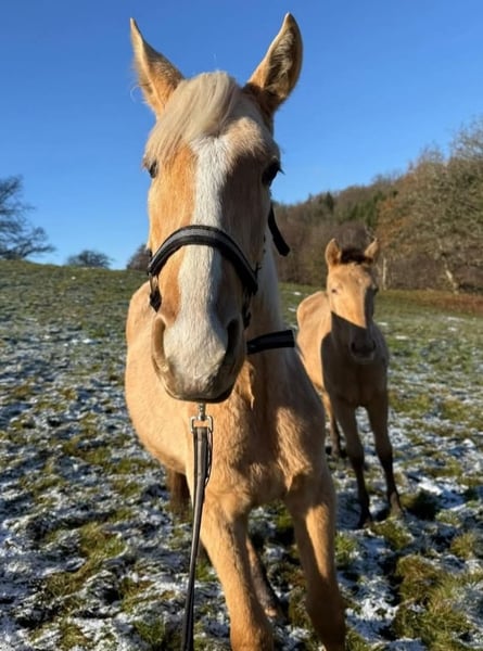Der unglaublich tolle Rayo ist ein totaler Hingucker später Mal :)! Palomino mit Blesse , weißen Beinen und beidseitiger dicker langer Mähne ..super dicker Schweif . Er wird mal eine unglaublich tolle Erscheinung sein. Er gibt brav alle 4 Hufe Bisher musste er noch nichts groß machen außer in einer Gruppe von Pferden groß zu werden . Er hat allerdings eine kleine Vorgeschichte ( da eine Dame ihn als Fohlen gekauft hat ( Absetzer ) und monatelang nicht bezahlt hat musste ich ihn wieder raus klagen mit der Polizei.. er wurde einfach "abgestellt " auf der Alm und das war's . Er hat in der Zeit nichts gelernt. Jetzt ist er wieder zurück und bekommt ordentliches Futter und darf wachsen und gedeihen . Ich habe eigentlich nicht damit gerechnet dass er wieder zurück kommt , zudem ist auch sein Vollbruder zurück gekommen wegen nicht Zahlung und ich habe aktuell gerade zum Winter hin einfach nicht die Zeit für soviele Pferde .. und suche dringende jemanden der sich mit dem Kerl beschäftigen möchte und ihm ein sicheres Zuhause bieten kann. Super gern in einen Offenstall , er wäre allerdings auch mit einer Paddock Box und Weidegang glücklich.. Er ist tatsächlich nicht so dieser typische Junghengst der ständig am Raufen und spielen ist , er steht lieber bei den älteren Pferden und sucht Schutz und kuschelt . Das führen muss noch vertieft werden . Hufe geben kann er und macht er brav mit . Auch beim Hufschmied war er . Er hat aktuell hinten eine Außenstellung am Huf ( was er als Fohlen nicht hatte ) das kam weil die Dame vorher nichts an den Hufen bearbeitet hat und er viel zu weich ( Matsch / Dreck ) stand . Mein Schmied sagt , man kann dieses wieder mit der Zeit und guter Bearbeitung wieder gut hinbekommen. Ich suche ein Zuhause wo er erstmal ankommen darf und viel schmusen und füttern kann :) Als er ankam war er sehr schmal .. Beide Eltern sind bekannt und Fotos vorhanden. Beides sind PRE s nur die Mama nicht gekört, weshalb er einen normalen Pass hat . Er trägt einen glanz in sich , als würde er silber schimmern ( evtl vom Papa"Perlino "). Hast du Lust ihn dir anzunehmen? Wenn er jetzt auf die schnelle ein Zuhause findet darf er für 3.9oo gehen .