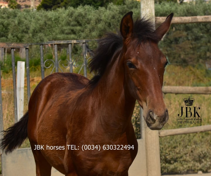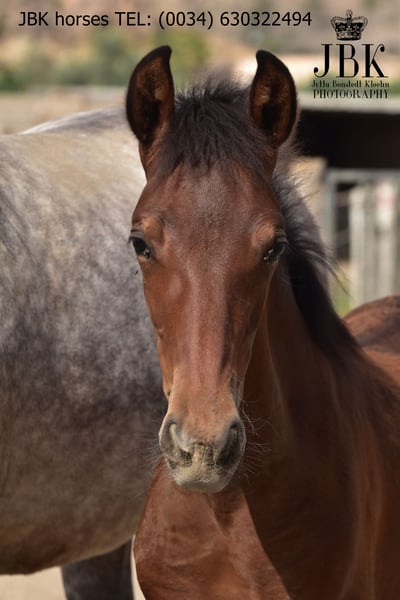 Valentin wurde am 14.02.2025, wie kann er also auch anders heissen? Ein sehr süsser Schatz, mit exzellenten Bewegungen. Seine Mutter ist eine gekörte PRE Stute, ihr Vater ist ebenfalls ein PRE, ist aber nicht gekört, somit hat er seinen EU Pass ohne Rassenachweis. Er kennt jetzt schon das Fohlen ABC gut, hat nie etwas Böses erfahren in seinem bisherigen Leben. Auch in einer Herdenhaltung mit verträglichen Artgenossen benimmt er sich vorbildlich. Wer diesen tollen Kerl fördern möchte, sollte nicht zögern.
