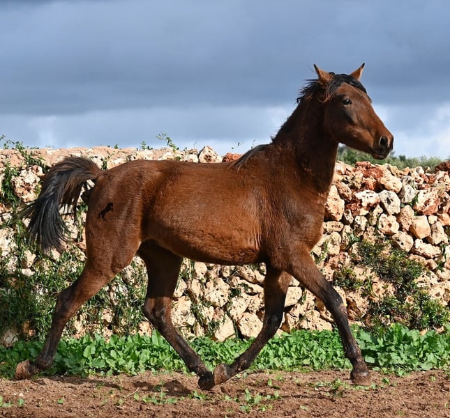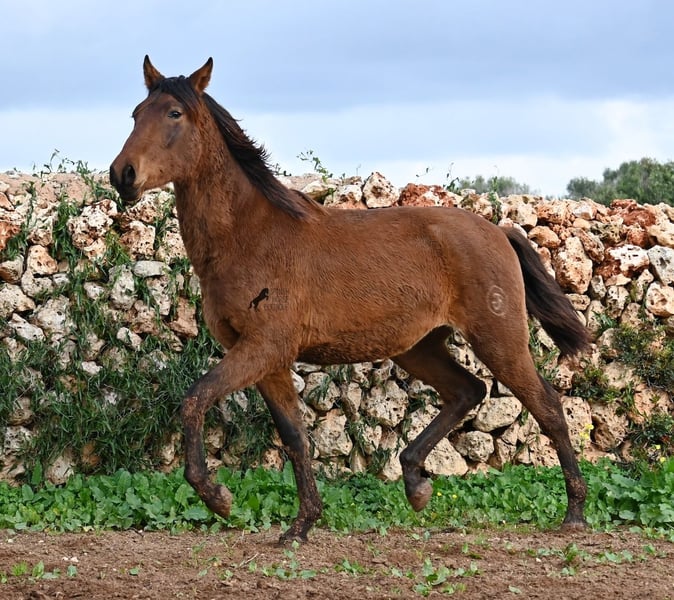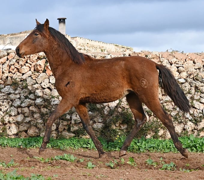 Deze PRE-ruin, geboren in 2024, is nog steeds een schattig pareltje. Maar hij laat al momenten zien waarop hij zich trots beweegt en laat zien wat voor een knappe vent hij wordt ;) Aan vaderskant heeft hij veel Escalera-bloed in zijn afstamming, wat waarschijnlijk ook bijdraagt aan zijn vriendelijke en open karakter. Hij kwam steeds nieuwsgierig naar me toe tijdens de vrije beweging om even hallo te zeggen. De fokker hecht veel waarde aan het feit dat de hengsten minimaal drie jaar opgroeien in een hengstenhengstengroep. Zo heeft hij tijdens de regenseizoen op Menorca een pluizige vacht en wat manen in de vacht, maar dat is slechts een teken van natuurlijk opgroeien ;) De jonge ruin is zeer nieuwsgierig en open, en vertoont geen hengstengedrag, hoewel hij nog volledig onervaren is. Hij beweegt mooi en zijn verwachte eindmaat ligt net boven de 1,60 m. Voor degenen die geen hengst kunnen houden, is er natuurlijk ook de mogelijkheid tot castratie ter plaatse. Zijn locatie is Menorca. Video's en afstamming op aanvraag beschikbaar. Graag organiseer ik ter plaatse een veterinaire keuring, training, castratie, transport of zelfs uw reis, mocht u persoonlijk willen komen kijken. Details hierover bespreek ik graag via mijn website of in een gesprek. Groeten uit Spanje