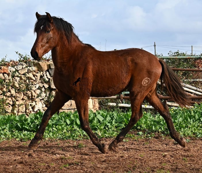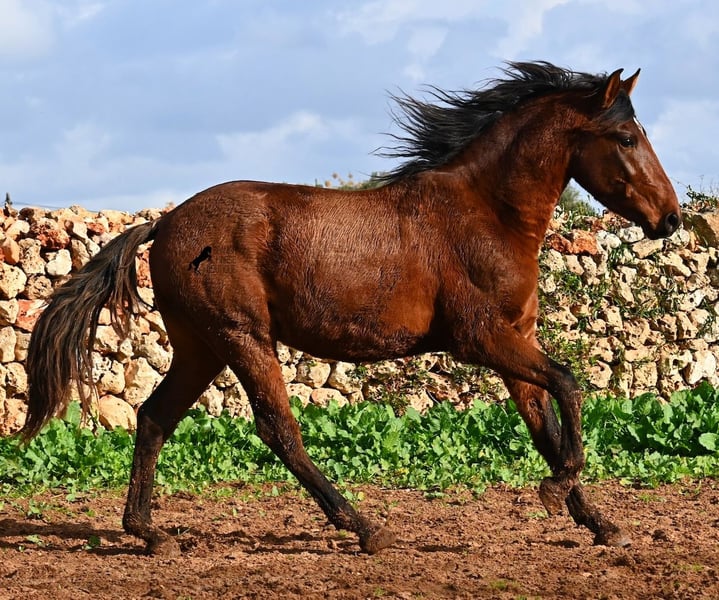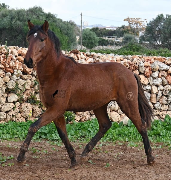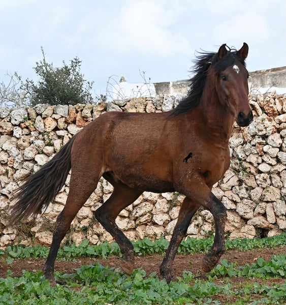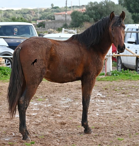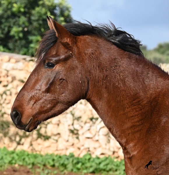 Dieser 2023 geborene PRE Hengst (Andalusier mit Rassenachweis der Ancce), ist ein richtiges Rohjuwel. Der Züchter legt großen Wert darauf, dass die Hengste bis mindestens 3 Jahre in der Hengstherde aufwachsen. So kommt es, dass er bei der Regensaison auf Menorca plüschiges Fell und etwas Panier im Fell hat, aber nur ein Indiz auf das natürliche Aufwachsen ;) Der Youngster ist sehr neugierig und aufgeschlossen und hat keinerlei Hengstmanieren, wobei er noch komplett roh ist. Freunde des klassischen PRE, werden beim Anblick auf seine Abstammung die Augen vor Freude leuchten! Denn er ist ein Sohn des Yeguada Militar (CARTUJANO) Hengstes UCLES II und väterlicherseits komplett Yeguada Militar gezogen! Mütterlicherseits kann sich auch sehen lassen, denn nicht nur hat er Escalerablut, sondern ist sogar ein Abkömmling des ELITEhengstes EDUCADO X von Guardiola! Daher kommt auch seine gute Bewegung und das barocke, nicht zu riesige Exterieur. Aktuell liegt er bei 154cm Stockmaß und wird auch noch einige Zentimeter wachsen, dennoch bestimmt im klassischen Typ des PRE bleiben und kein "Riese" werden. Er ist ein klassicher Brauner mit schwarzen Socken und schwarzer Mähne, aufgelockert durch einen kleinen Stern. Es besteht die Möglichkeit, dass er vor Ort noch antrainiert wird und aufs Reitpferdeleben vorbereitet wird. Für all jene die keinen Hengst halten können, besteht natürlich auch die Option der Kastration vor Ort. Sein Standort ist Menorca. Videos und Abstammung gerne auf Anfrage. Gerne organisiere ich vor Ort eine AKU, Beritt, Kastration, Transport oder auch ihre Reise, sollten Sie persönlich zum Anschauen kommen. Details dazu gerne auf meiner Seite oder im Gespräch. Saludos aus Spanien