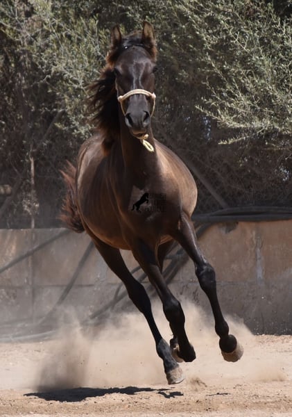 Dieser 04/2023 geborene PRE Hengst (Andalusier mit Rassenachweis der ANCCE), ist farbtechnisch noch ein kleines Überraschungsei! Er ist von der ANCCE als Rappe eingetragen, zeigt aber auch Anzeichen für einen Dunkelfalben. Da der Farbtest nicht gemacht wurde und er der Sohn von einem Perlino ist, wird er entweder Smoky Black oder ein dunkler Buckskin. In jedem Fall: Wunderschön! Und für alle, die sich nicht überraschen lassen wollen, kann natürlich die Farbanalyse in Auftrag gegeben werden ;) Überraschen wird der junge Mann nicht nur mit seiner Farbe, sondern auch seiner Bewegung! Die langen Beinchen fegen nur so über den Platz und er genießt es richtig zu traben. Dabei ist er absolut unerschrocken und cool- was eine Herausforderung war ihn für gute Fotos zu schicken, aber eine tolle Darstellung seines Charakters. Irgendwann wird man ja ein großer, starker Mann, da muss man ja auch den passend mutigen Charakter dazu haben. Er steht in Robusthaltung 24h draußen in Gesellschaft anderer Jungs und ist somit bestens sozialisiert und abgehärtet. Seine Abstammung, kann sich abgesehen von den vielen Sonderfarben wie Perlino, Falbe und Rappe, auch sehen lassen. Er ist zurückzuführen auf den beliebten Mejorante Hengst Remache XIII und auch Escalerablut findet sich immer wieder in seinen Genen. Sein zu erwartendes Endmaß ist um die 160cm. Ein sehr cooler Youngster, mit tollen Qualitäten zum sehr fairen Preis. Sein Standort ist Mallorca. Es besteht die Möglichkeit, ihn noch länger zur Aufzucht beim Züchter zu lassen. Videos und Abstammung gerne auf Anfrage. Gerne organisiere ich vor Ort eine AKU, Transport oder auch ihre Reise, sollten Sie persönlich zum Anschauen kommen. Details dazu gerne auf meiner Seite oder im Gespräch. Saludos aus Spanien