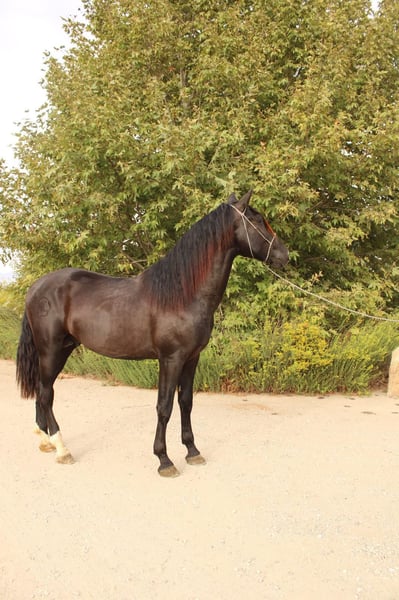 Étalon Andalou Élégant – Né en 2023 Découvrez la beauté et l’élégance de cet étalon andalou exceptionnel, né en 2023. Mesurant environ 1,70 m (17 mains), ce jeune cheval remarquable allie des traits classiques andalous à une apparence raffinée et expressive. Conçu pour le dressage, il fait preuve d’un talent naturel, d’un mouvement exceptionnel et d’un tempérament volontaire, en faisant un partenaire idéal pour les cavaliers recherchant élégance et performance. Que vous visiez la compétition de dressage ou une présentation sophistiquée en ring d’honneur, cet étalon offre un potentiel énorme. Ne manquez pas l’opportunité de posséder un étalon andalou prometteur, avec un avenir brillant devant lui. Contactez-nous dès aujourd’hui pour en savoir plus sur ce cheval d’exception ! Visitez whitestallionhay.com pour découvrir davantage sur Espresso de Castellon.