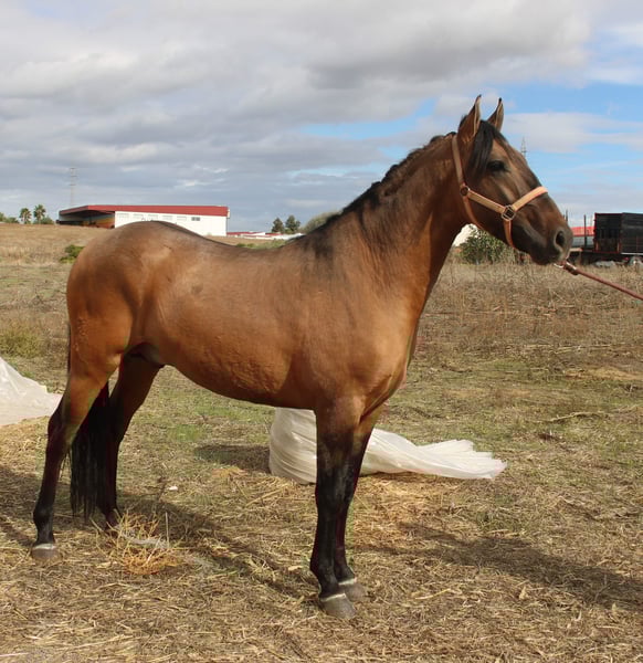 Este hermoso ejemplar de color dun con castaño, raya dorsal y patas a rayas, es realmente un pequeño espectáculo. Conoce la cuerda, es manejable con la cabestro, tiene la mente clara y es afable con las personas. Este joven no es muy dominante, es amigable en su trato y siempre manejable sin problemas. Con gusto puede ser entregado a nosotros para su entrenamiento si así se desea. Se puede solicitar una revisión veterinaria completa (AKU). El transporte será organizado internacionalmente. Videos a petición.