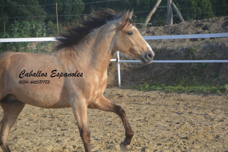 Dieser hübsche andalusische Falbhengst sucht sein foreverhome. Der junge Mann ist neugierig und aufgeweckt. Immer an neuen Dingen interessiert. Er ist gut erzogen und im Umgang brav. Der Hengst ist in angeritten in den drei Grundgangarten. Bei der Arbeit zeigt er sich immer arbeitswillig und mit Spaß am Lernen. Das wird ein toller Freizeitpartner. Das Pferd wird im Auftrag verkauft. Er kann gerne bei uns noch in Beritt bleiben. Eine AKU wird kurzfristig organisiert. Internationaler Transport.