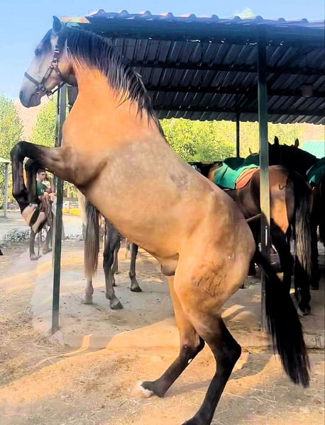 Este joven semental de color especial es simplemente un tesoro. Ya se monta en campo y en vías públicas y se comporta de manera ejemplar. Aún está en las primeras etapas de su desarrollo y busca un hogar de cinco estrellas. Para más información, no dudes en contactarnos por WhatsApp al 0175 861 45 35.