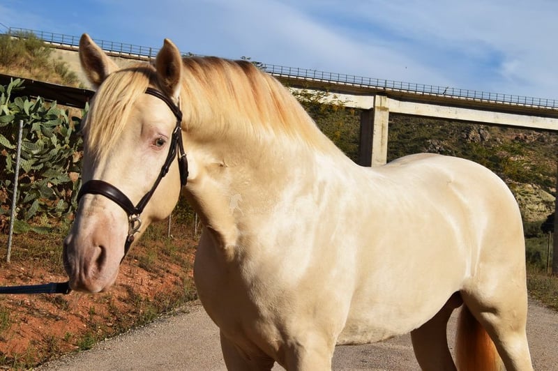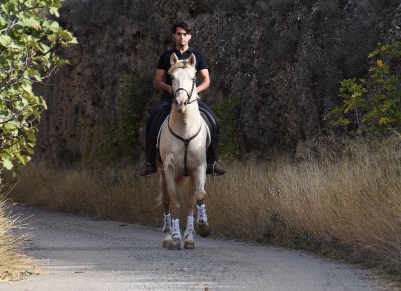 Gentle, calm temperament, curious, affectionate, ridden in basic gaits, lateral movements, extensive trail riding, Romería, Rocío, started in Spanish walk, baroque type, good movements, special color. www.elegante-andalusier.com