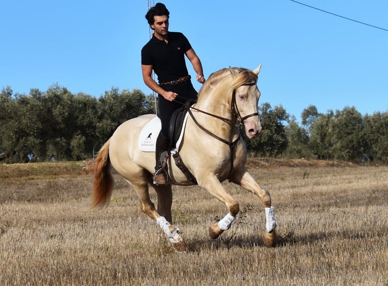 Uprzejmy, spokojny charakter, ciekawski, przytulny, jazda w podstawowych chodach, półbłędne, dużo terenu, Romería, Rocío, zaczęty od hiszpańskiego chodu, barokowy, dobre ruchy, wyjątkowy kolor www.elegante-andalusier.com