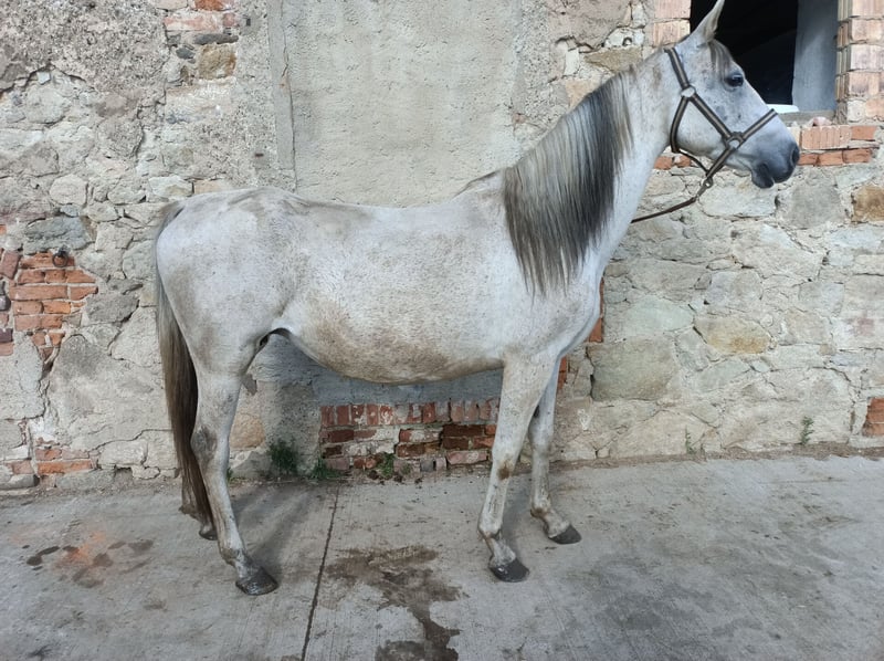 This beautiful lady recently had a foal at her side and is now looking for a new job. She is completely healthy and only has an old scar on her leg, which does not limit her and is considered a cosmetic flaw. Otherwise, she is absolutely well-behaved and hardly gets flustered, both in handling and in traffic. She is currently being fed up and will soon be prepared for life as a riding horse. A further career as a broodmare is also conceivable. She does not come with pedigree papers but has an original Spanish passport, is vaccinated and dewormed. A veterinary check and transport can be negotiated.