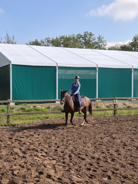 Andalusische merrie – XXL pony / paard – familiegericht, kindvriendelijk, vrijetijds Donna is een liefdevolle, in 2013 geboren Andalusische merrie die sinds 2021 deel uitmaakt van ons gezin. Onze dochter rijdt haar regelmatig tijdens lessen en heeft haar op kleinere wedstrijden voorgesteld. Haar potentieel is op hoger niveau en ideaal voor gezinnen of recreatieruiters die op zoek zijn naar een fijn te rijden partner. Ze is braaf in de dagelijkse omgang, mensgericht en kent kinderen en veel bedrijvigheid op de stal. In de kudde is ze makkelijk en zowel binnen als buiten, op de piste en in het terrein, doet ze alles betrouwbaar. Qua uitstraling is ze een echte blikvanger – vooral door haar hoog wit bewerkte achterbeen en haar elegante uitstraling. Ze is korthaarig en hoeft niet geschoren te worden. Bij ons is Donna nooit ziek geweest. Donna is regelmatig gevaccineerd en ontwormd, loopt op hoefijzers of is hoefvrij en wordt trouw door de hoefsmid verzorgd. Een kleine gezondheidscontrole (AKU) kan in overleg worden uitgevoerd. Vanaf zomer 2026 gaat onze dochter haar grote droom waarmaken: een schooljaar in het buitenland. Om deze stap zelfstandig te kunnen financieren, heeft ze er met pijn in het hart voor gekozen om Donna te verkopen. De laatste maanden mist ze steeds meer de tijd om Donna zo te begeleiden als ze verdient. Daarom zoeken wij voor Donna een familie of recreatieruiter die haar de volle aandacht kan geven. Donna is kindvriendelijk, braaf in de omgang, fijn te rijden en een paard dat je meteen in je hart sluit. • Naam: Donna • Merrie, geboren op 06.04.2013 • Kleur: bruin (Castano) • Ras: Andalusiër • XXL pony / Klein paard • Geregistreerd bij de FN, met paspoort en chip • Hoofd: ster + wirbel • Achter links: hoog wit bewerkt, lichte hoef • Hoefijzervrij • Nooit ziek geweest bij ons, regelmatig gevaccineerd en ontwormd • Regelmatig door de hoefsmid verzorgd Graag melden en een keer live bekijken, dan kunnen we ook spreken over proefritten of voorrijden, bij serieuze interesse. Bij puur “paardentourisme” behouden wij ons een vergoeding van €50 voor. Over de prijs zijn wij in overleg. Gezinnen krijgen de voorkeur, omdat Donna van kinderen houdt en echt een gezinspaard is. Particulier verkoop.