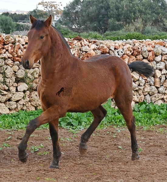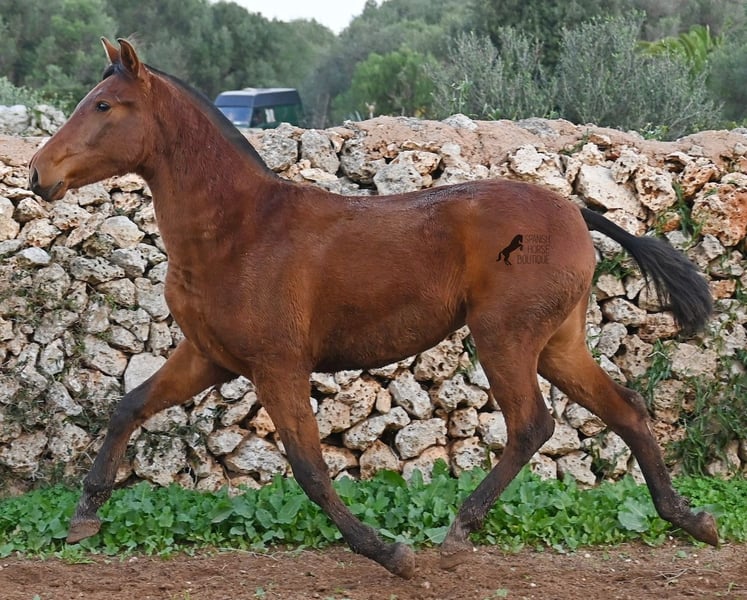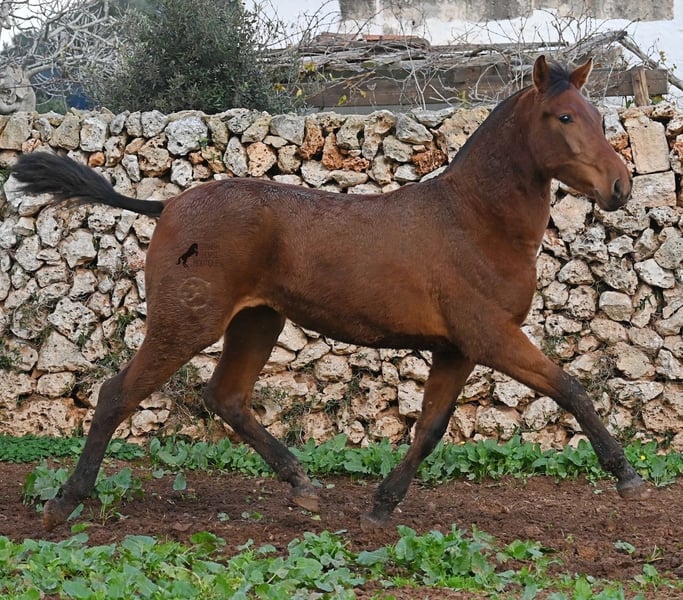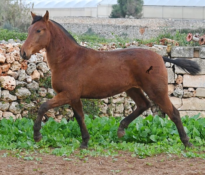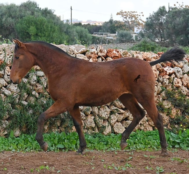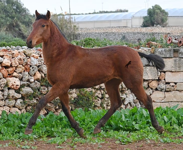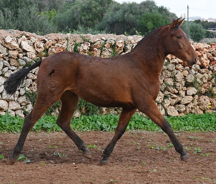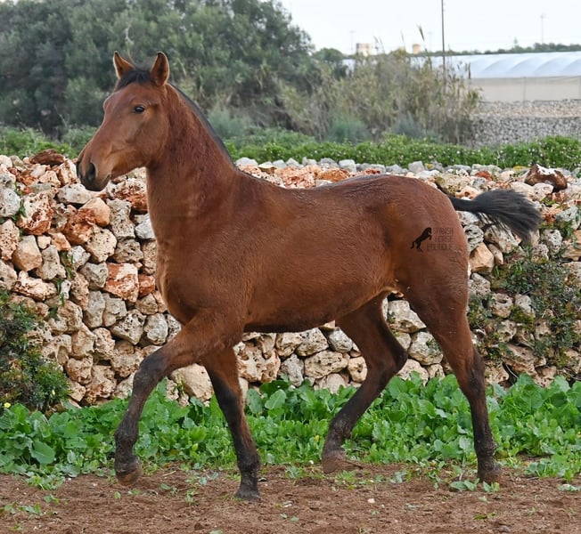 Diese 2024 geborene PRE Stute (Andalusier mit Rassenachweis der Ancce), ist jetzt schon eine atemberaubende Stute! Trotz rutschigem Untergrund, zeigt sie ganz stolz, wie viel Bewegung in ihr steckt und wie geschmeidig und flexibel sie ist. Ihr Vater ist mehrfach prämiert, sowohl für die gute Bewegung, als auch morfologisch (Zuchtschau) und ohne Zweifel hat er dieses Talent bestens vererbt. Sie wächst in der Herdenhaltung 24/7 auf, was sie sehr robust macht und sie ist bestens sozialisiert. Dank der Regensaison auf Menorca, auch etwas von Matsch paniert ;) In ihrer Abstammung finden wir den Mejorante Hengst Barquito von Guardiola, sowie den Mejorante Hengst Hebreo XIX von Escalera. Sie hat eine klassische Mischung von Guardiola und Escalera in ihren Blutlinien, was für das klassich barocke Exterieur und den feinen, menschenfreundlichen Charakter sorgt. Ihr zu erwartendes Endmaß liegt um die 160cm und dank ihrer Flexibilität und Wendigkeit, wird sie nicht nur für die Dressur, sondern auch für die Working Equitation sehr interessant werden. Solltest du sie erst später holen wollen, so kann gerne ein Aufzuchtsplatz für sie organisiert werden. Videos und Abstammung gerne auf Anfrage. Ihr Standort ist Menorca. Gerne organisiere ich vor Ort eine Fohlen-AKU,Transport oder auch ihre Reise, solltest du persönlich zum Anschauen kommen. Details dazu gerne auf meiner Seite oder im Gespräch. Saludos aus Spanien